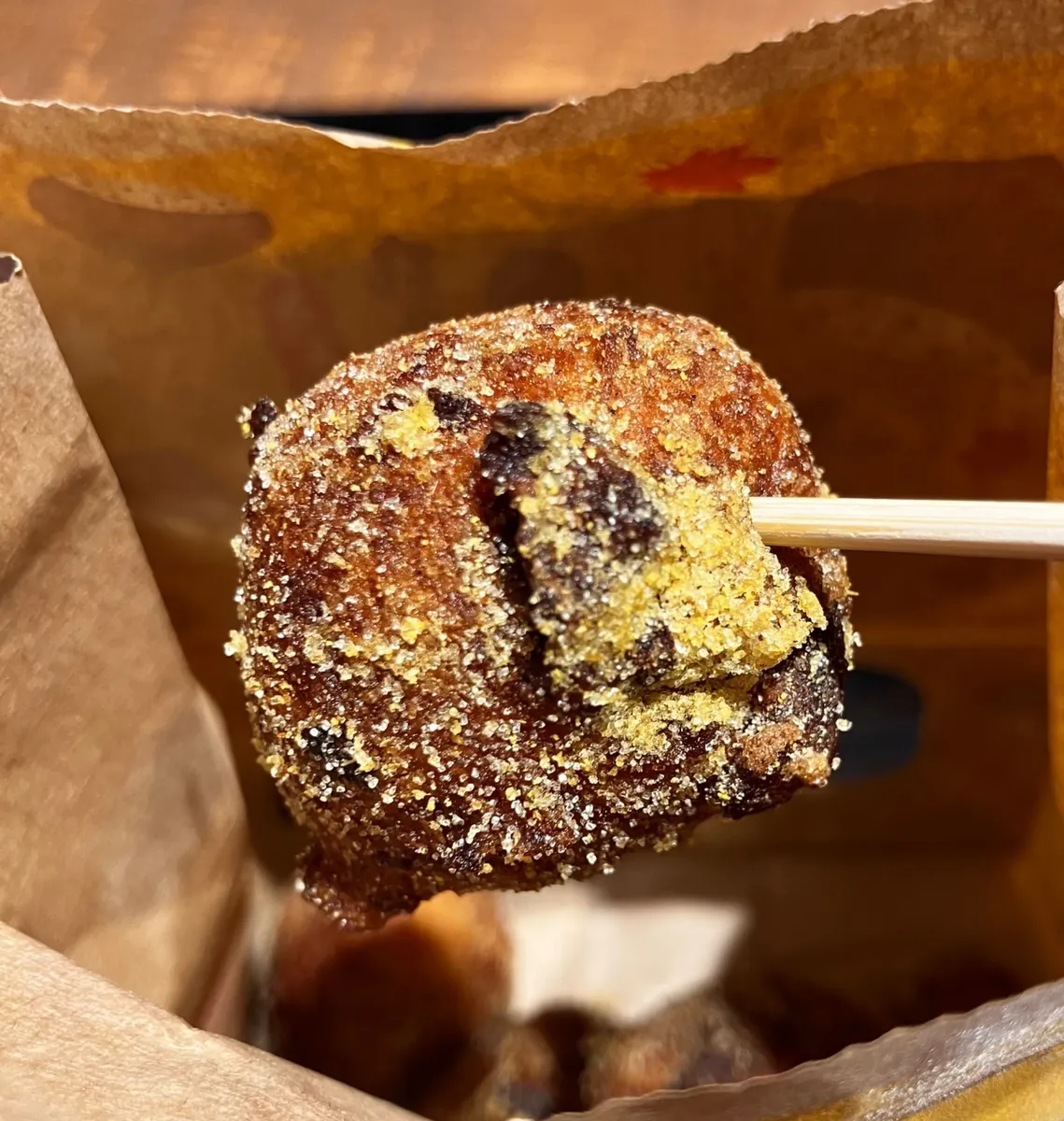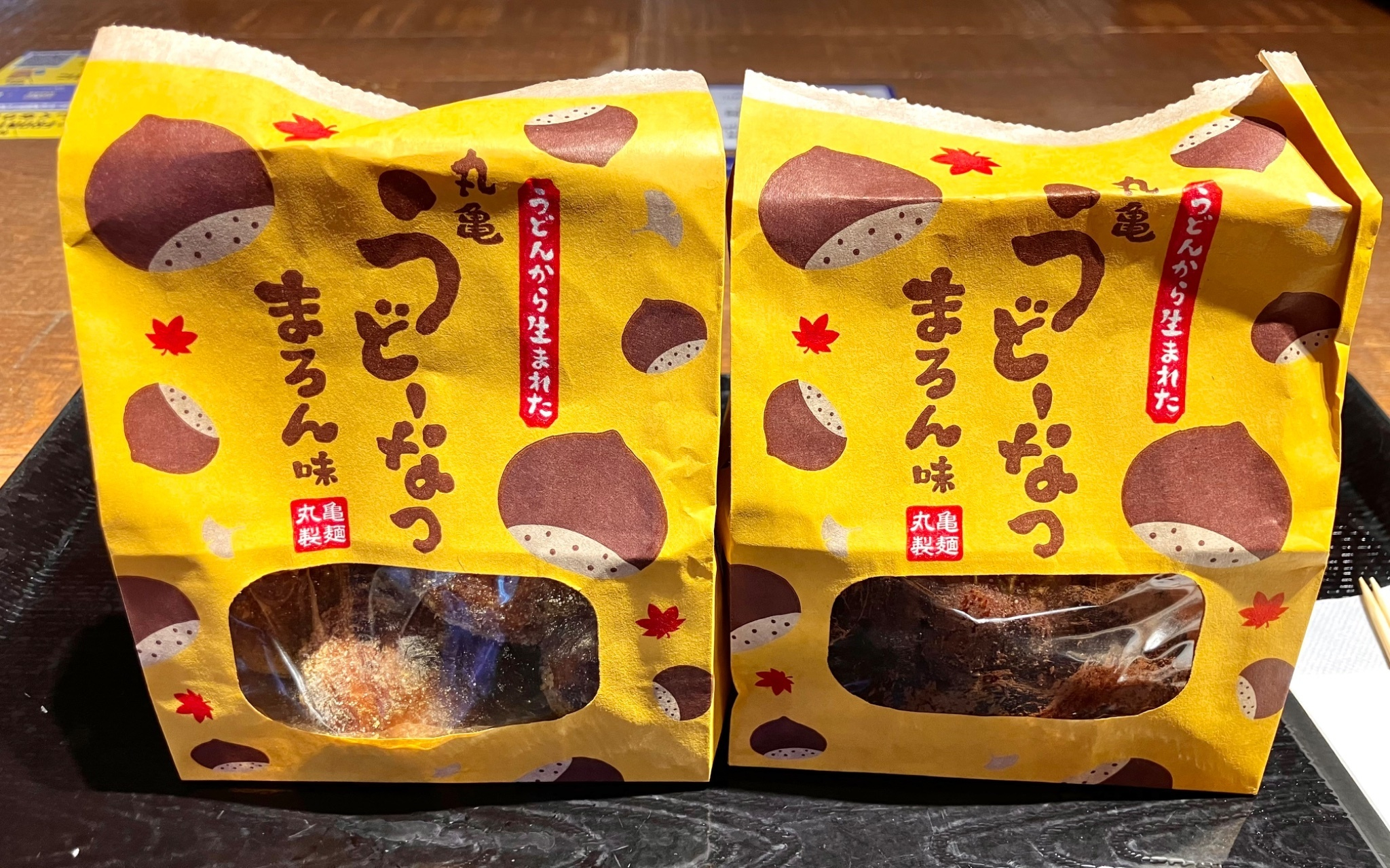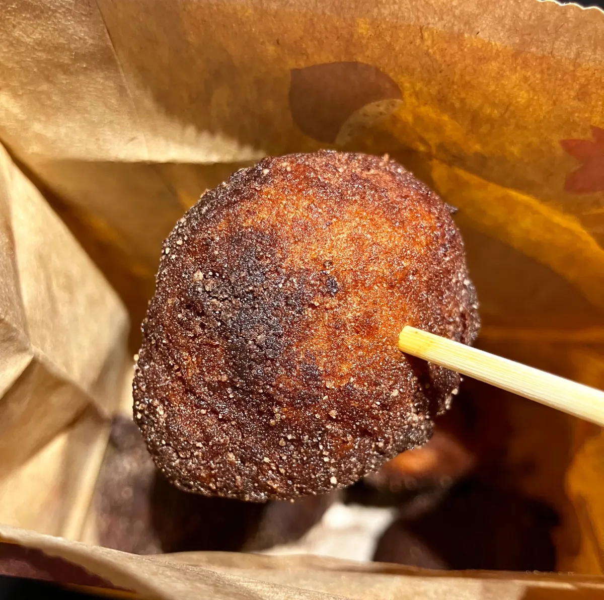 ほんのり栗の香りと、栗の甘露煮のツブツブ感が楽しいうどーなつで、まろん味パウダーの方は、