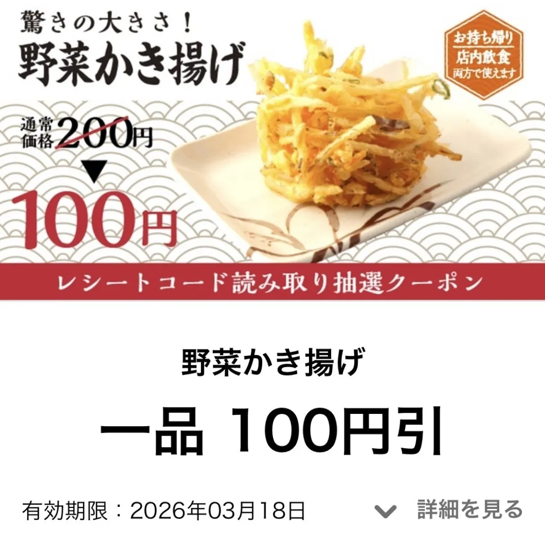 天ぷら50円引き、野菜かき揚げ100円引きの次は大根おろし無料リーチですね🎰