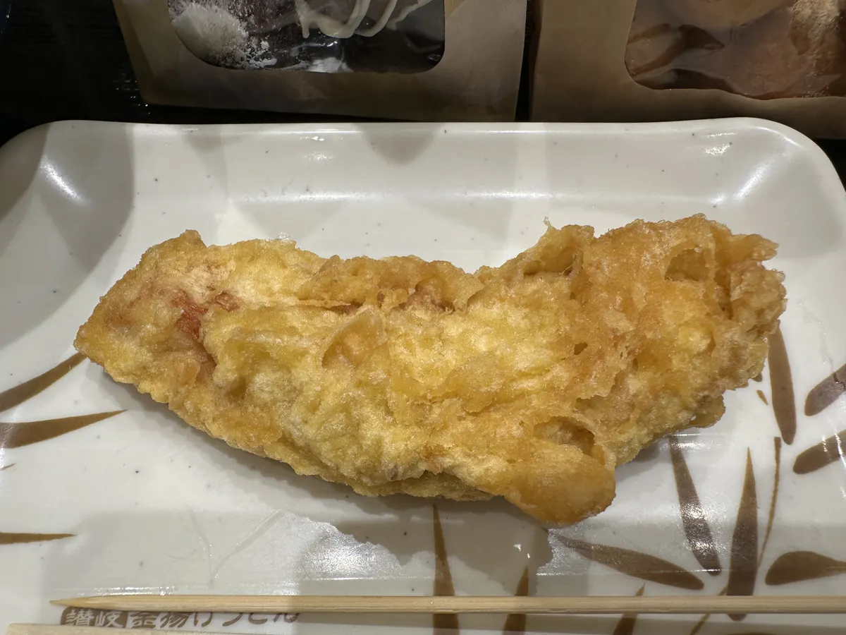うどん札が貯まり、天ぷら50円引きクーポンでかしわ天😁