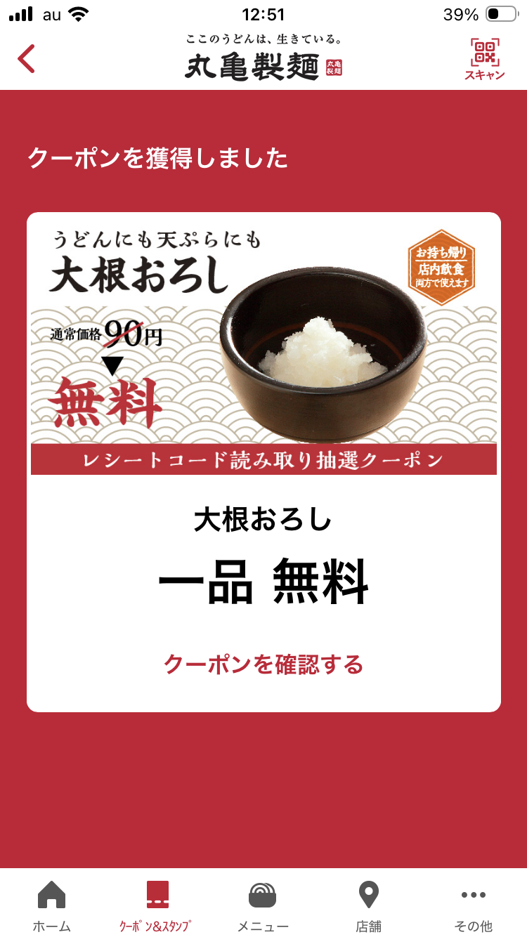 大根おろし無料クーポン当たりおめでとうございます㊗️