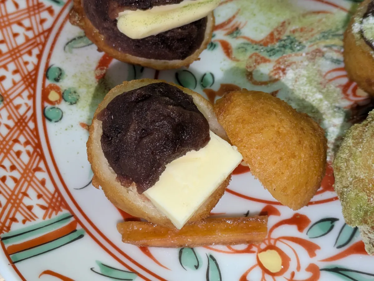 うどーなつの中心、綺麗にあんこが入っていますが😆中をくり抜いてから、あんこ入れてあるのかな?🤗✨✨