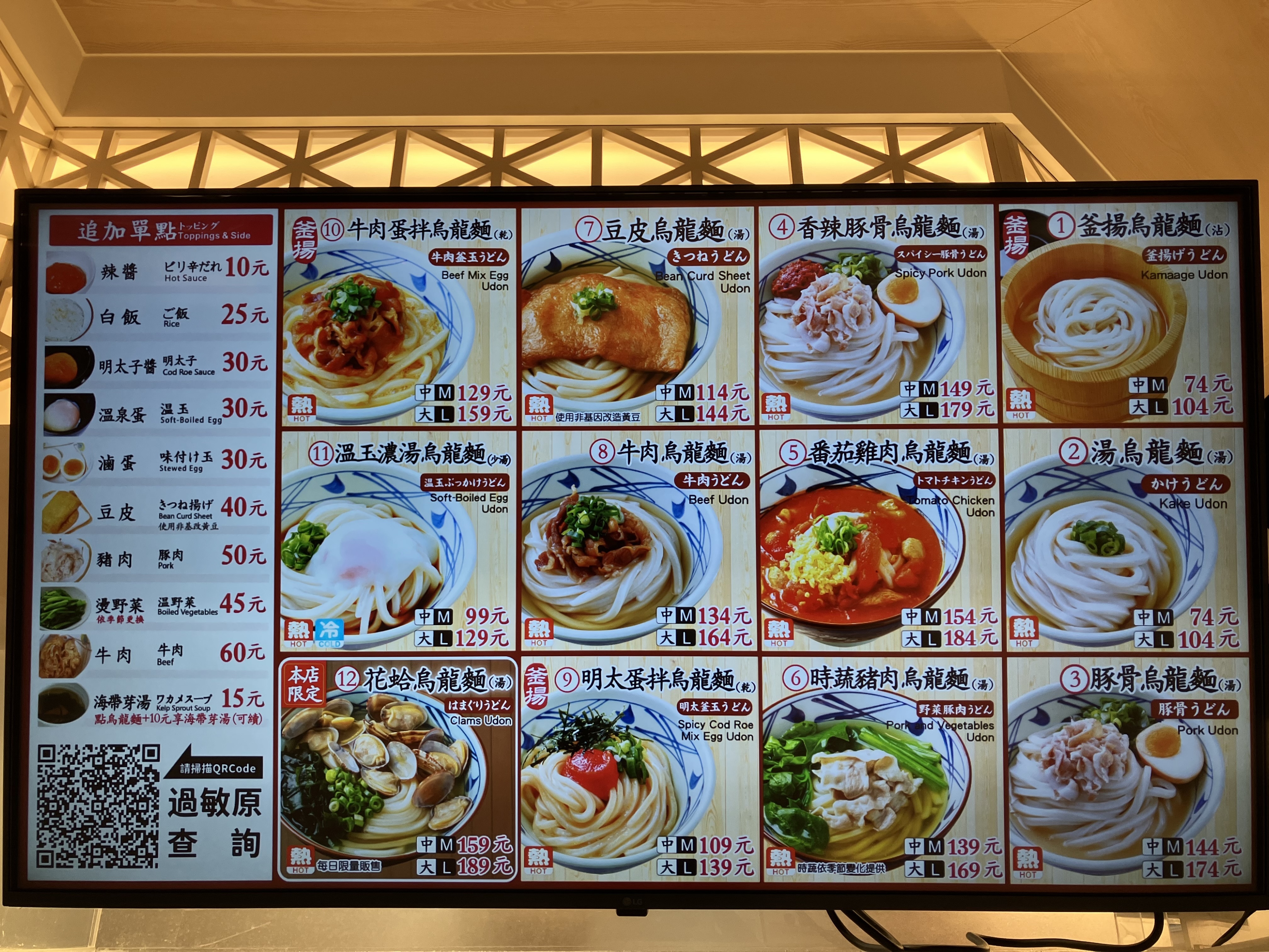 台湾の物価はわかりませんが、日本の丸亀製麺のうどんからすると、リーズナブルな感じですね。