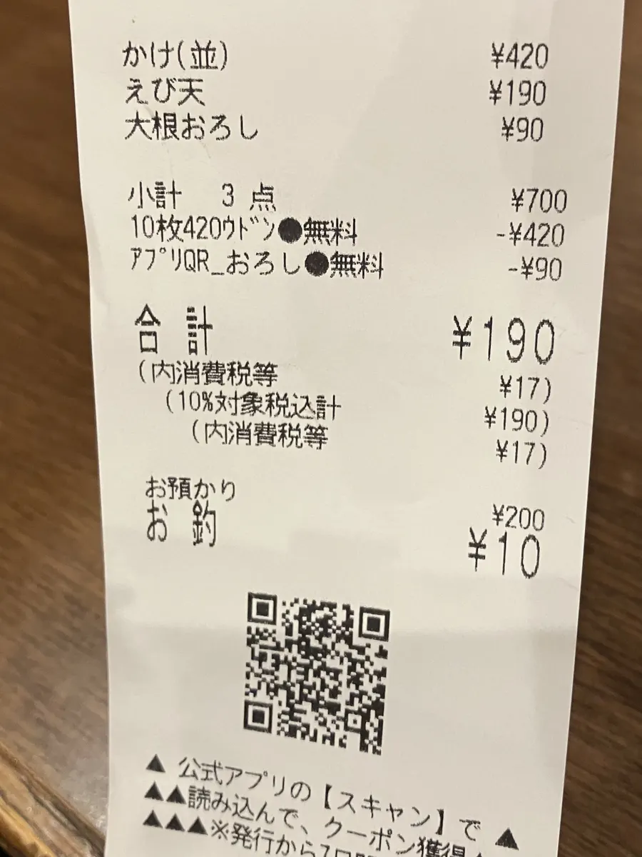しかも今回は...冷かけのおかげで貯まったうどん札で♪かけ温が無料♬