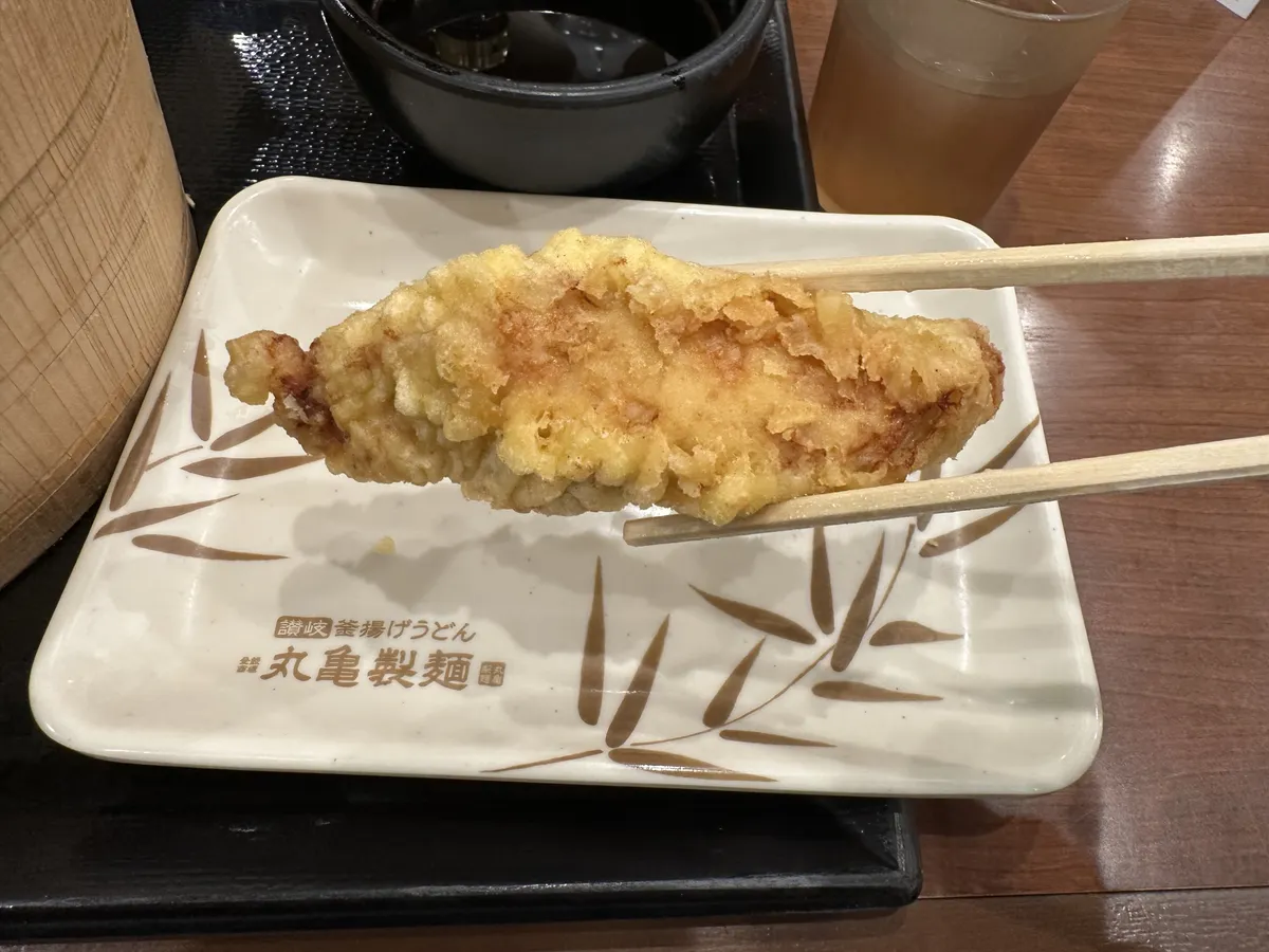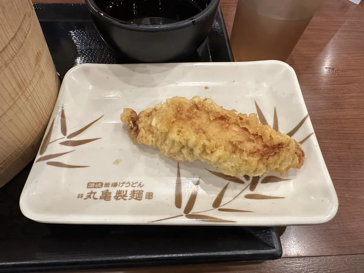 天ぷら50円引きクーポン&うどん札5枚でかしわ天。