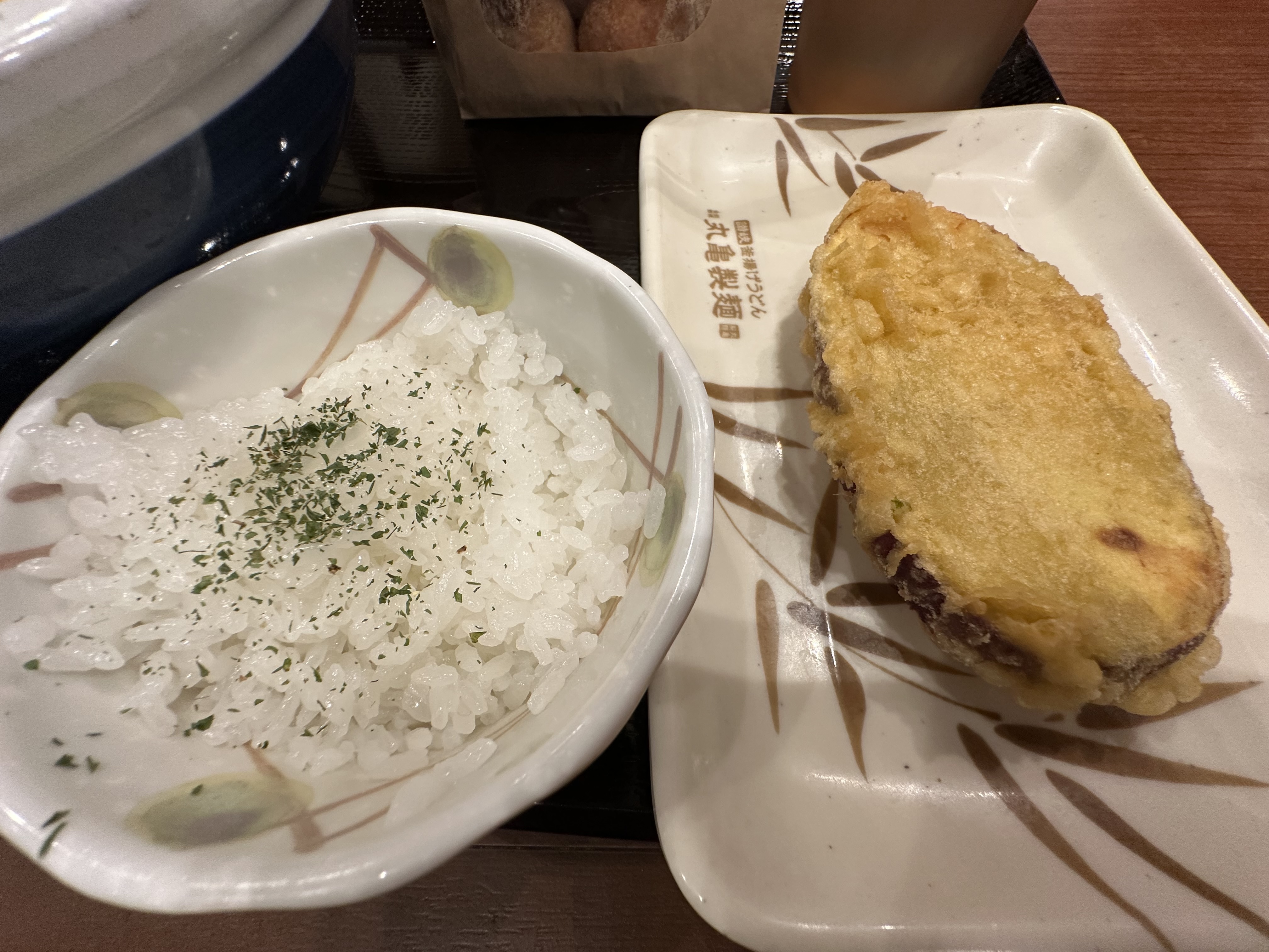 一口ご飯と、さつまいも天ぷら。