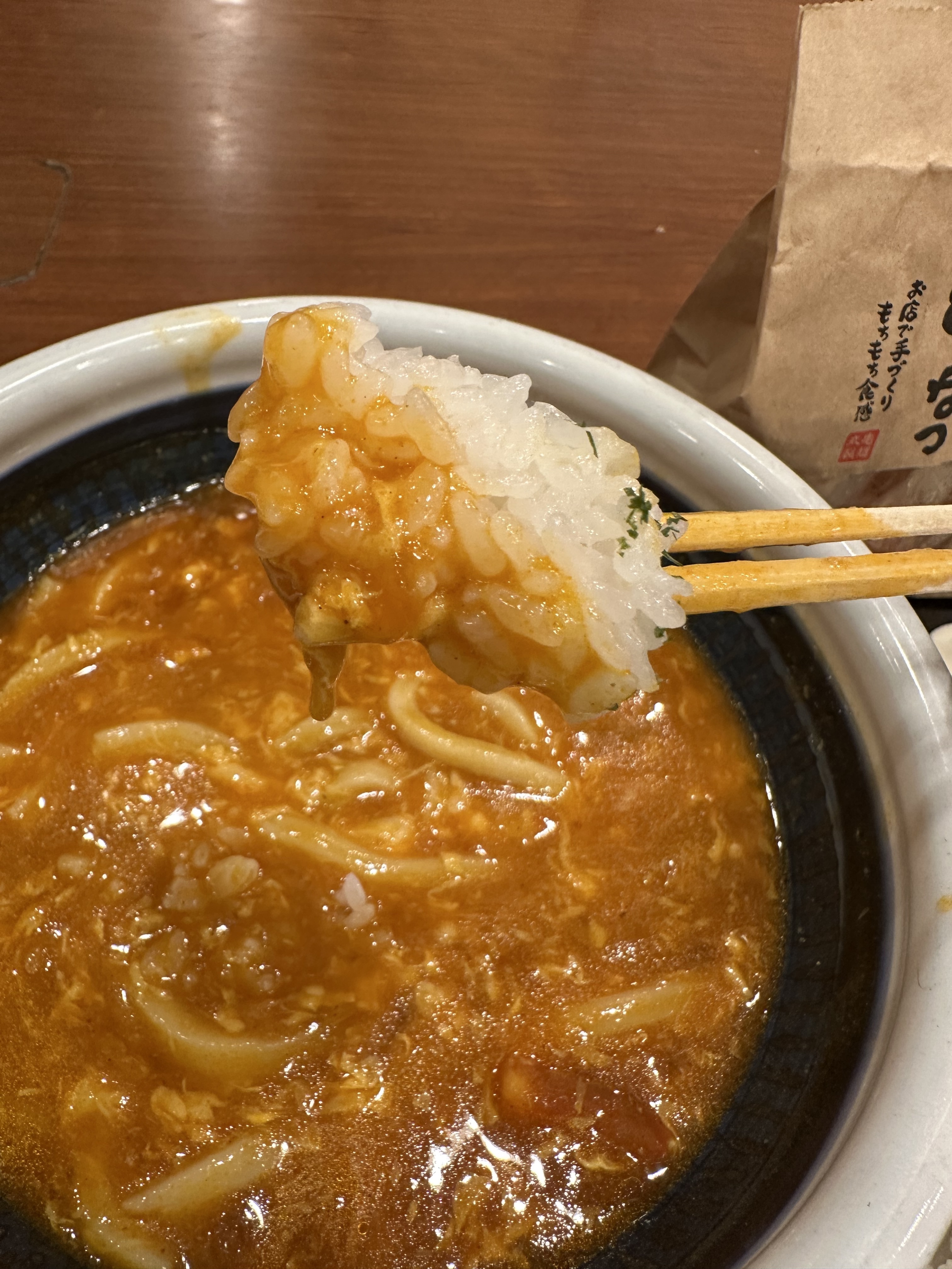 最後は一口ごはんをトマたまカレーうどんに付けて食べました。😁