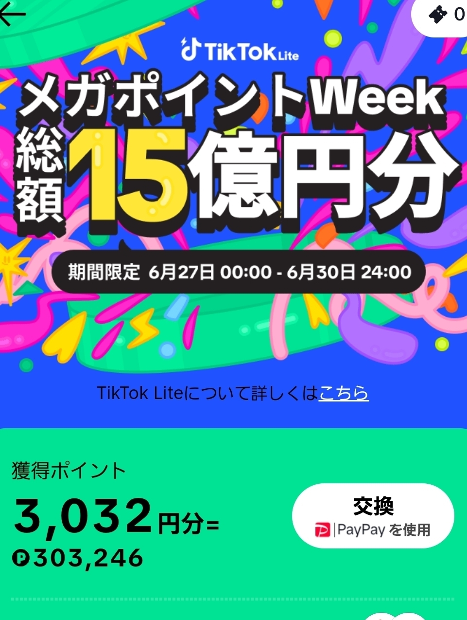 過去にティックトック、ティックトックライトやったことある人は対象外でした…