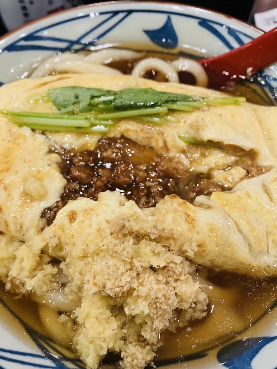 あんかけ肉とじうどん+だし巻きのような味わい♪そうだ、アレやってみよう🖐️