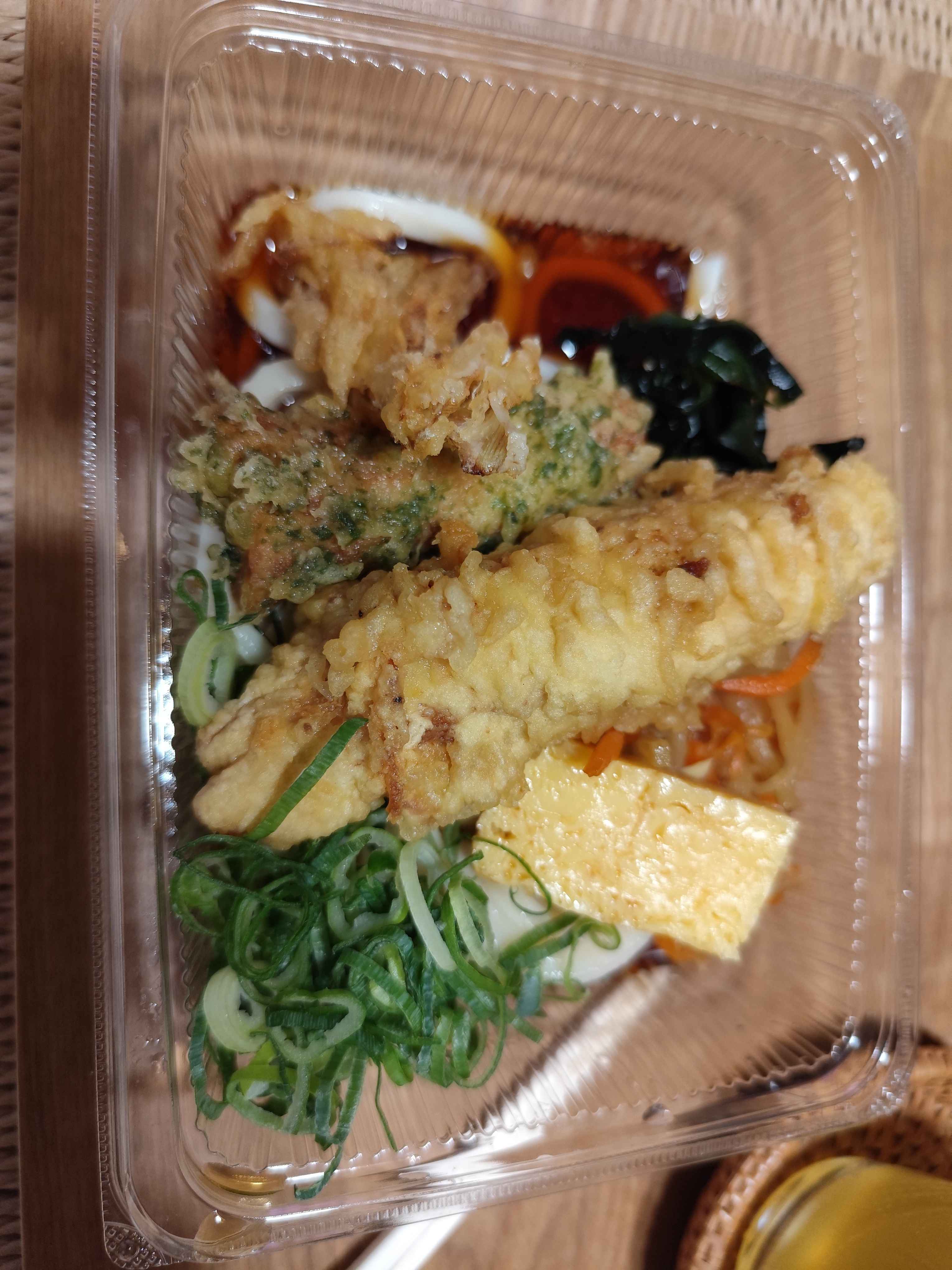 今日は、かしわ天ものせて、少し豪勢に 笑
