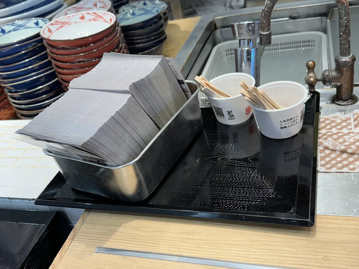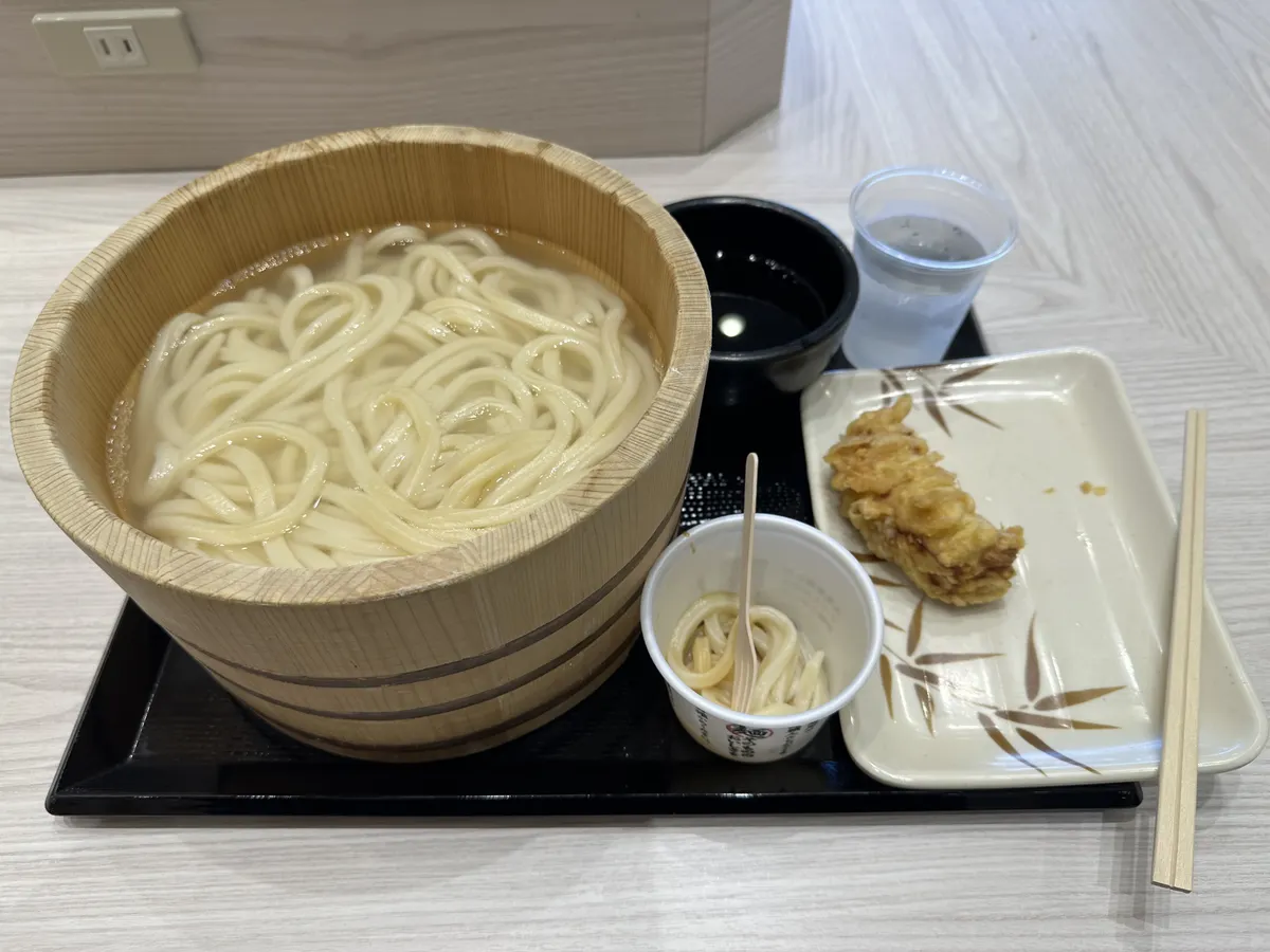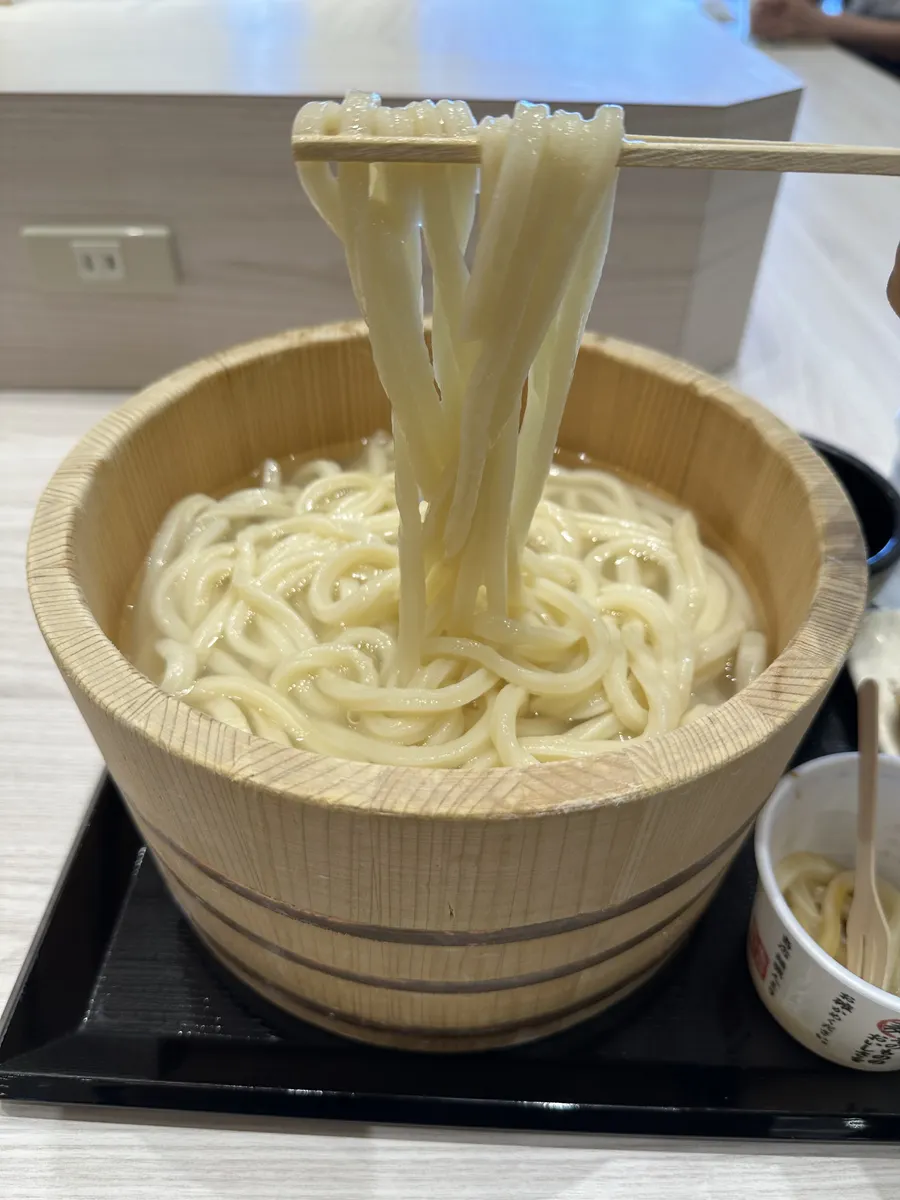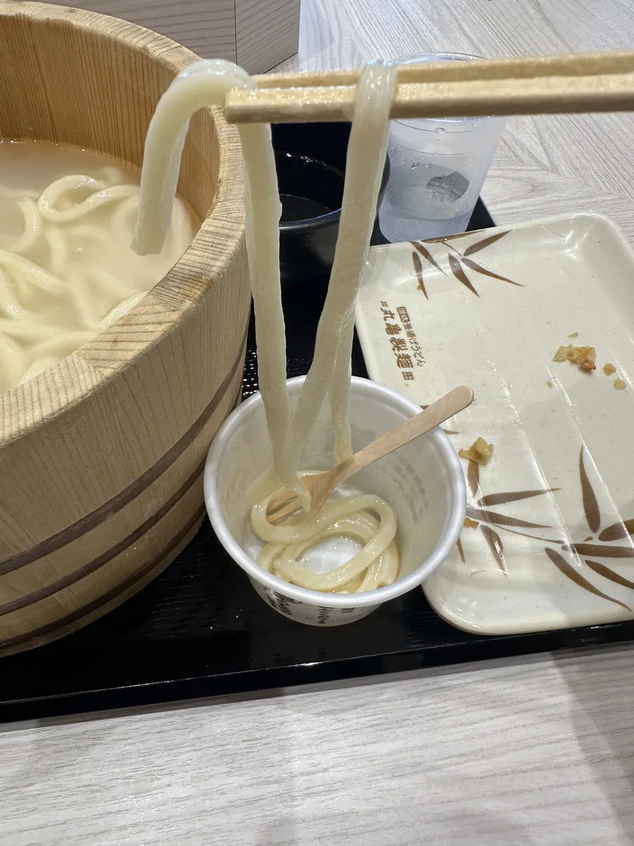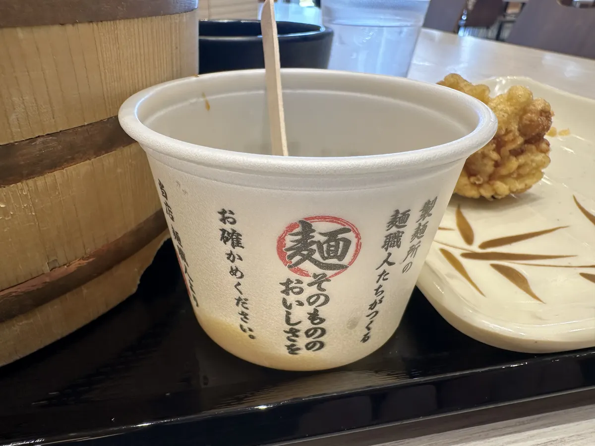 釜揚げうどんを醤油うどんの容器に移して、もう一度残りの醤油に漬けて食べました😁