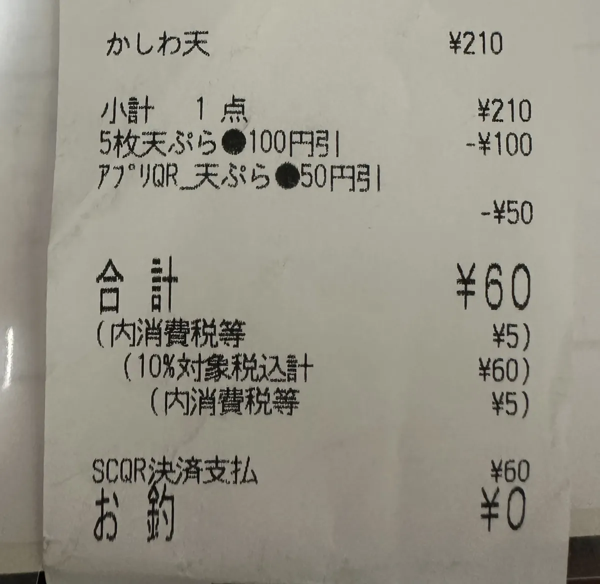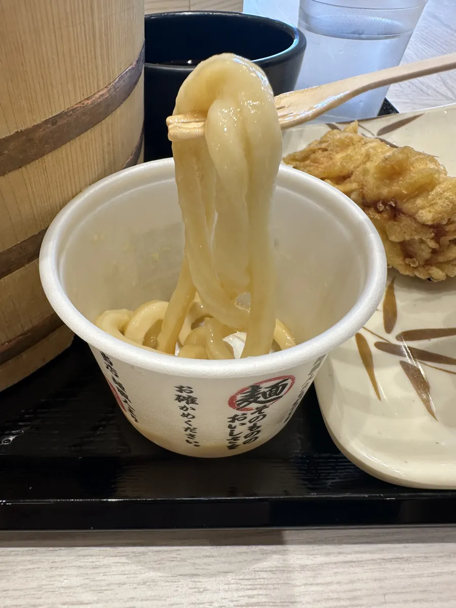クーポンは天ぷら50円引きが出たので、プラスうどん札5枚で60円(ペイペイポイント払い)で実質タダで食べました。😁