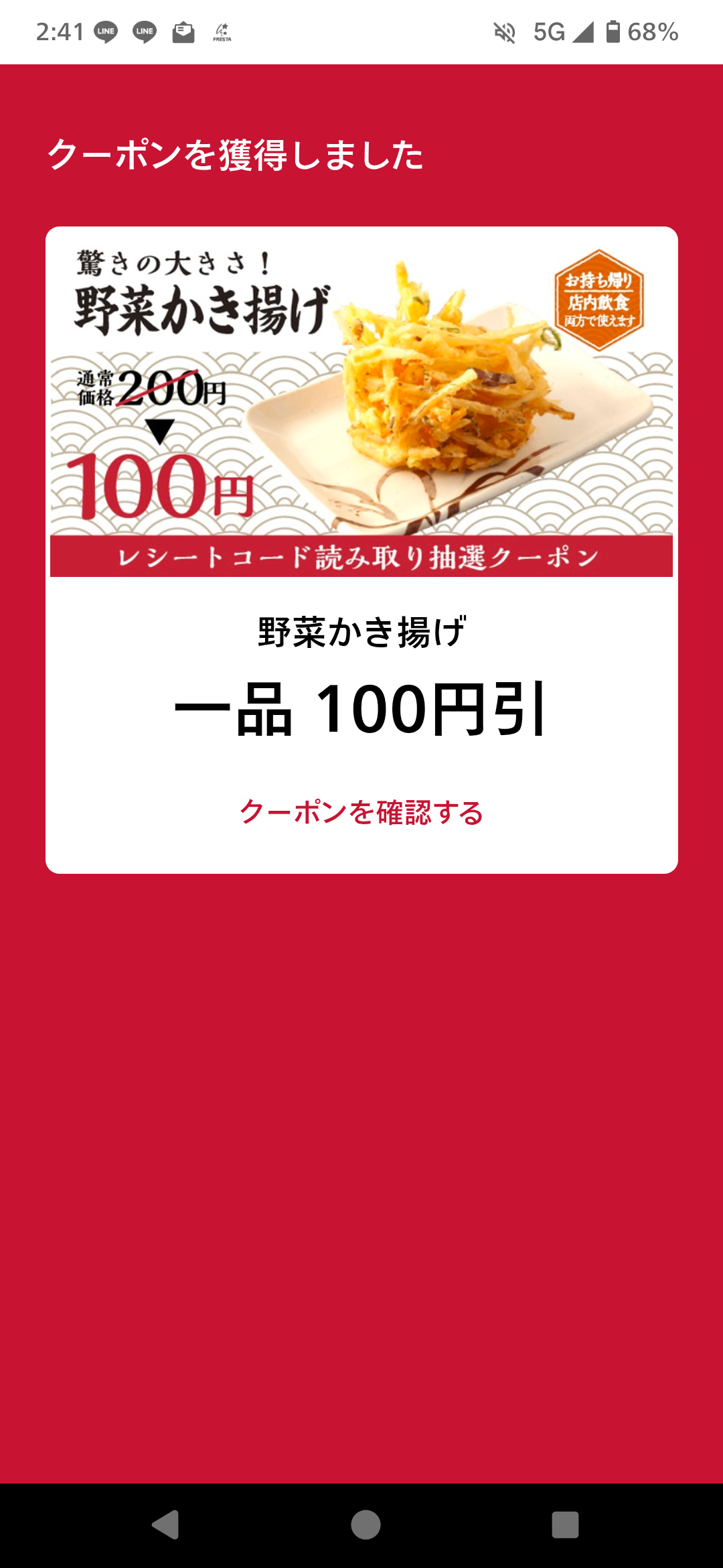 野菜かき揚げ100円引き当たりおめでとうございます🎉