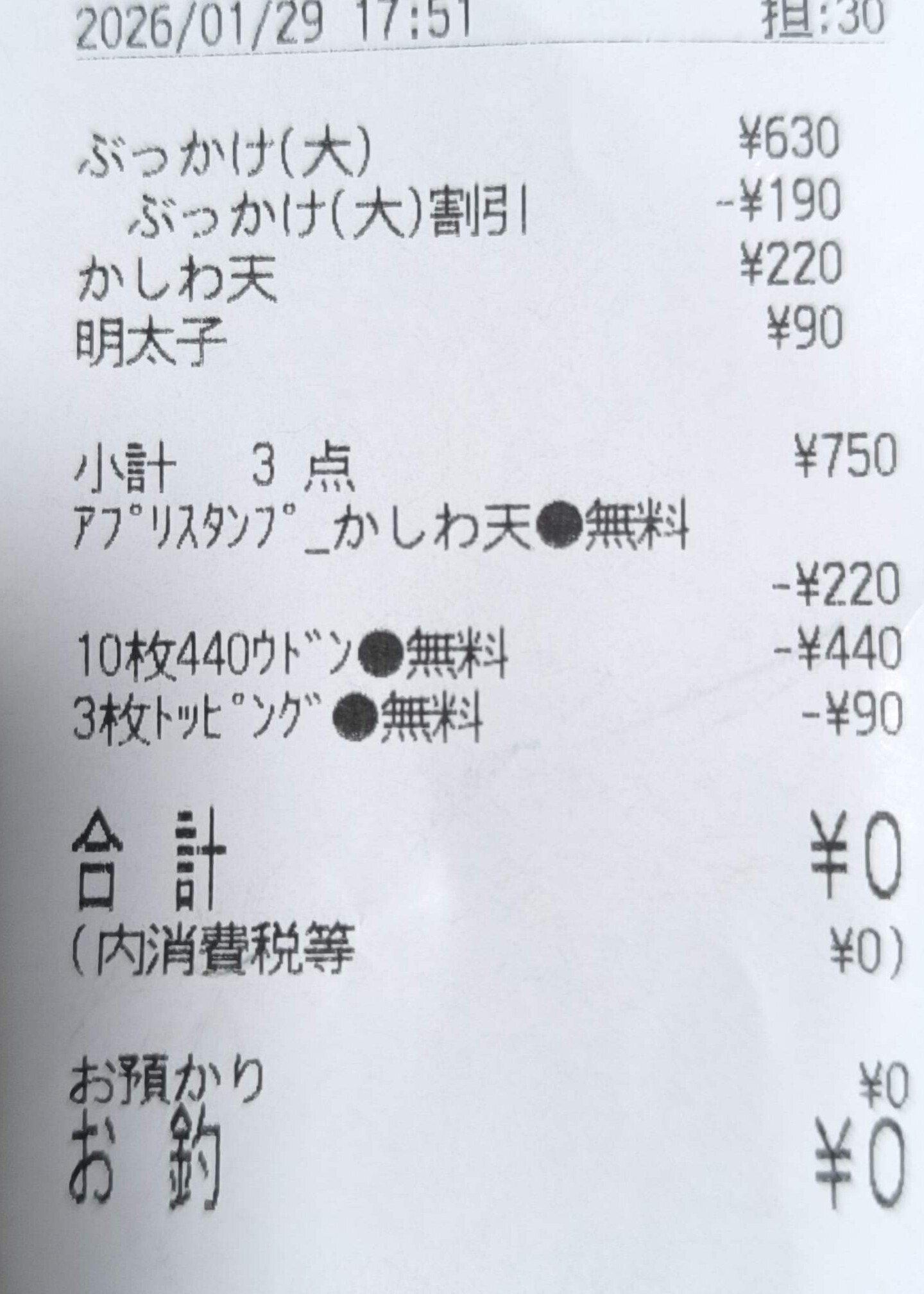 投稿を表示アプリクーポンはひとつだけですが、うどん札はバンバン使えるんですね!すごい👍