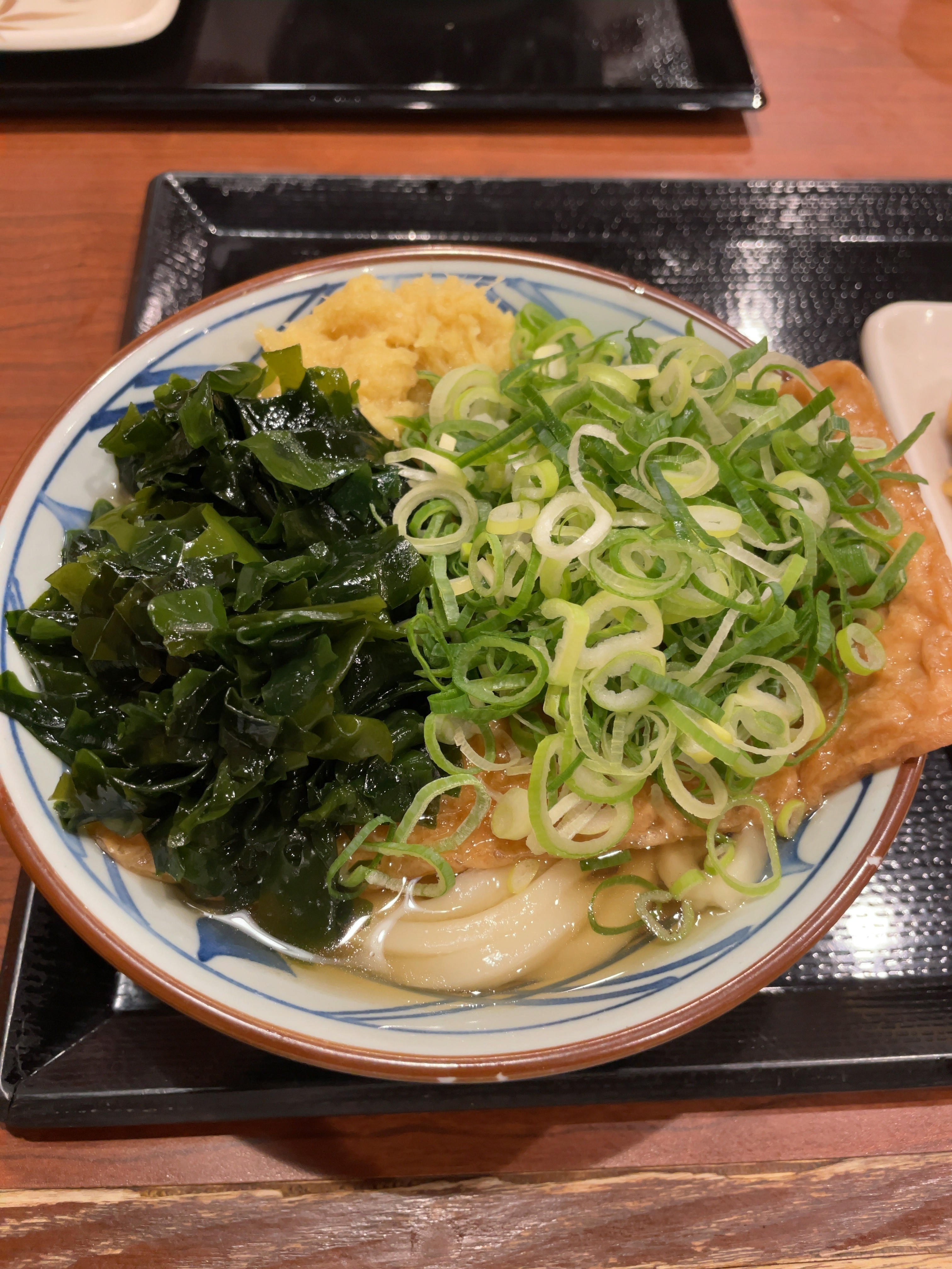 仕方ないので、うどんは定番のきつねの並を生姜、ネギ、わかめだくにして。