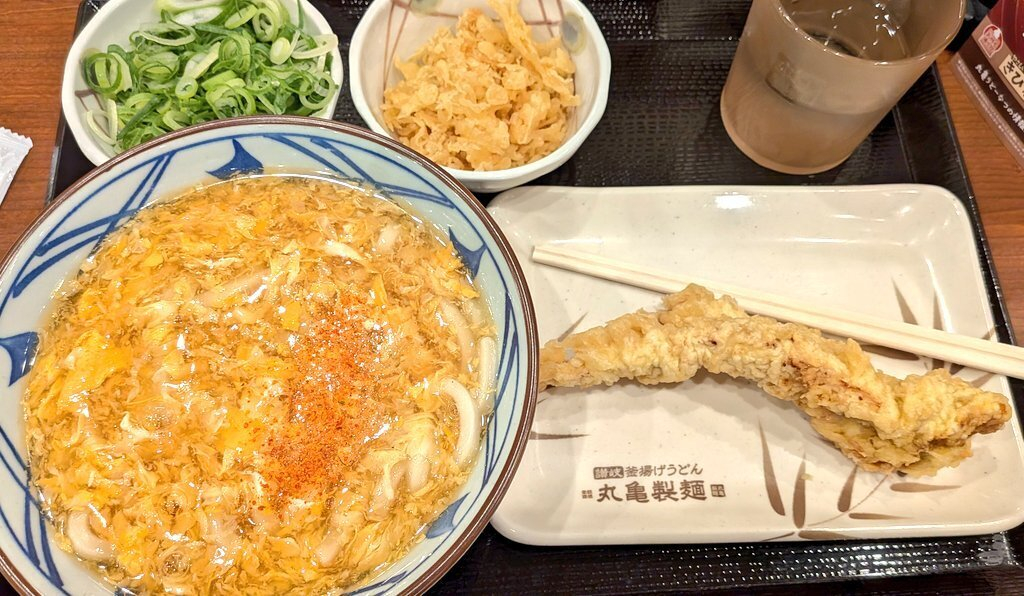 先日はこの季節限定の玉子あんかけうどんとかしわ天を注文して、