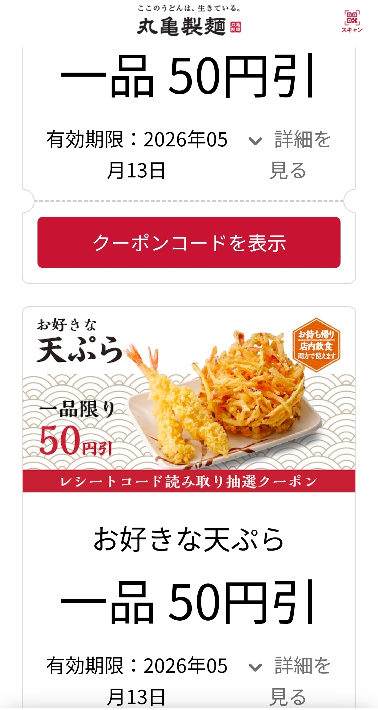 トップ > MARUGAMEgram > 今日の丸亀 > 連チャン🎰 マッラー🍓 2026/04/13 18:08 連チャン🎰 今回も昨日のレシートを一晩寝かせて2枚読み取りしたらなんと天ぷら50円引きが連続で2つ当たりました🎯 何の天ぷらにしようか色々考えてるのが楽しみです😆 #天ぷら50円引き当たり いいね 共有する 共有する X LINE リンクをコピー コメントする 7 件の返信 (新着順) ミュートしたユーザーの投稿です。 投稿を表示 ひかるうどん 2026/04/14 07:35 おめでとうございます! いいね 返信する ミュートしたユーザーの投稿です。 投稿を表示 マッラー🍓 2026/04/14 20:16 ひかるうどん ありがとうございます🥹 いいね 返信する ミュートしたユーザーの投稿です。 投稿を表示 T.K 2026/04/13 23:16 素晴らしい強運👏 いいね 返信する ミュートしたユーザーの投稿です。 投稿を表示 マッラー🍓 2026/04/14 20:16 T.K ありがとうございます😊 いいね 返信する ミュートしたユーザーの投稿です。 投稿を表示 spring🐾 2026/04/13 22:09 連続おめでとう🎉 天ぷら食べなきゃ😆 いいね 返信する ミュートしたユーザーの投稿です。 投稿を表示 マッラー🍓 2026/04/14 20:15 spring🐾 ありがとうございます😊 springさんも2日連続天ぷら50円引きおめでとうございます🎉 いいね 返信する ミュートしたユーザーの投稿です。 投稿を表示 ちーちゃん🌺 2026/04/13 21:33 おめでとう🎉いいな〜😏 いいね 返信する ミュートしたユーザーの投稿です。 投稿を表示 マッラー🍓 2026/04/14 20:15 ちーちゃん🌺 ありがとうございます😊 いいね 返信する ミュートしたユーザーの投稿です。 投稿を表示 武蔵 2026/04/13 20:05 確変突入しましたね✌️ いいね 返信する ミュートしたユーザーの投稿です。 投稿を表示 マッラー🍓 2026/04/14 20:15 武蔵 果たして確変いつまで続くかな🎰 いいね 返信する ミュートしたユーザーの投稿です。 投稿を表示 みみ 2026/04/13 19:39 おめでとうございます🎊 いいね 返信する ミュートしたユーザーの投稿です。 投稿を表示 マッラー🍓 2026/04/14 20:14 みみ ありがとうございます🎰 いいね 返信する ミュートしたユーザーの投稿です。 投稿を表示 ひかるうどん 2026/04/13 18:51 羨ましいですぅ いいね 返信する ミュートしたユーザーの投稿です。 投稿を表示 マッラー🍓 2026/04/14 20:14 ひかるうどん ありがとうございます☀️ いいね 返信する