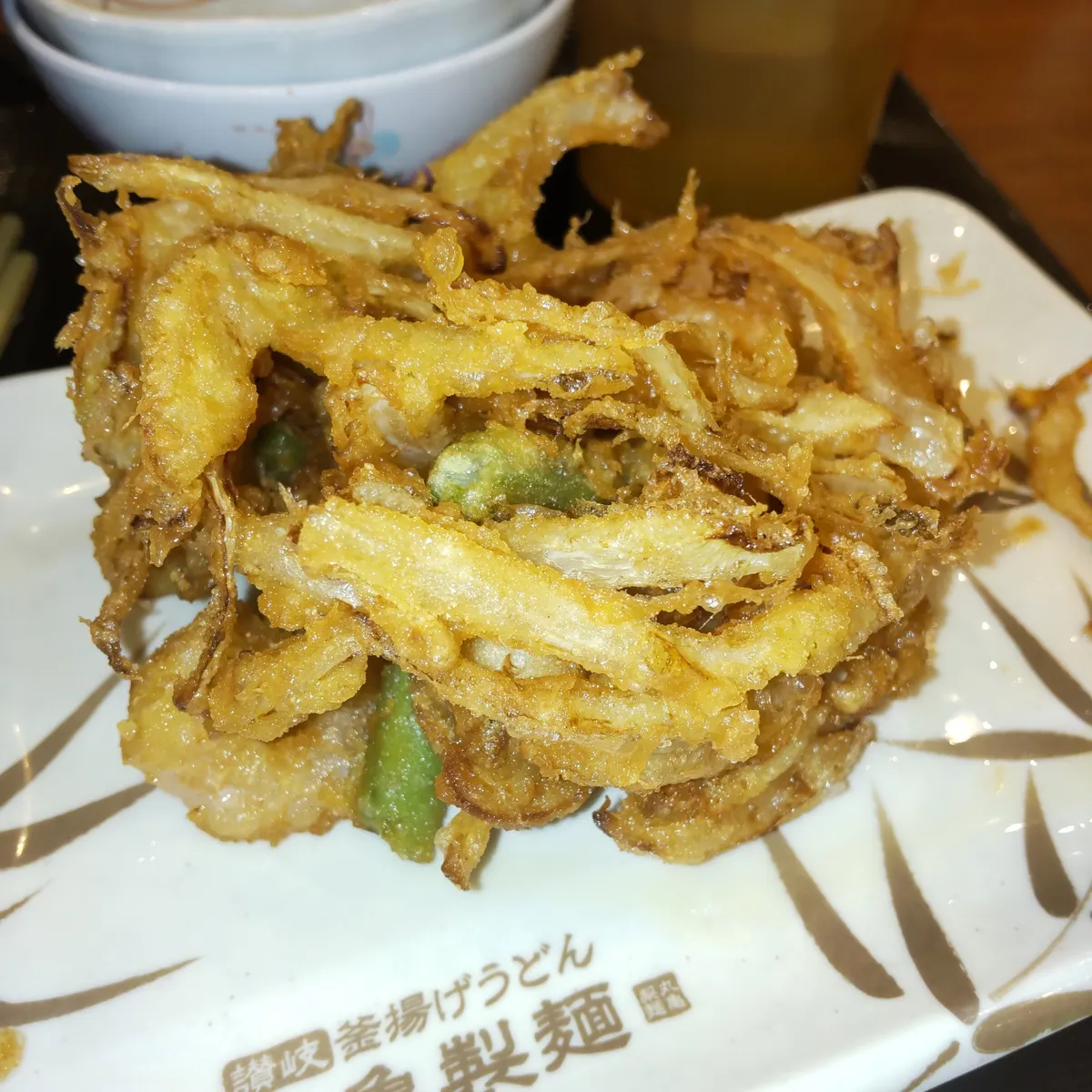 海老ほたてかき揚げ、、、確かに焦げ気味で油を含んでそうですね。