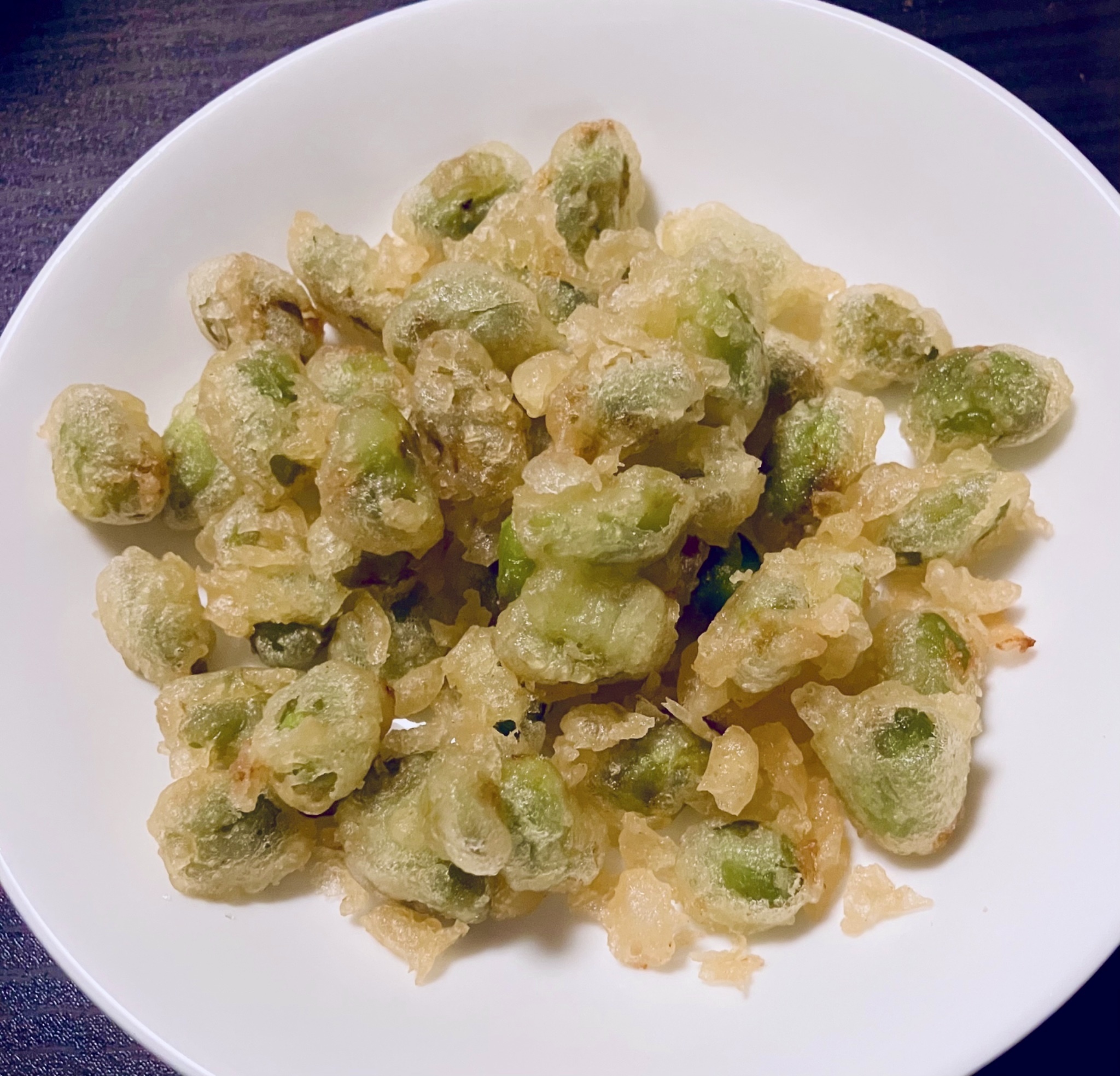 仙豆天ぷらは、固まらずに、上手くパラパラに揚がっていて、