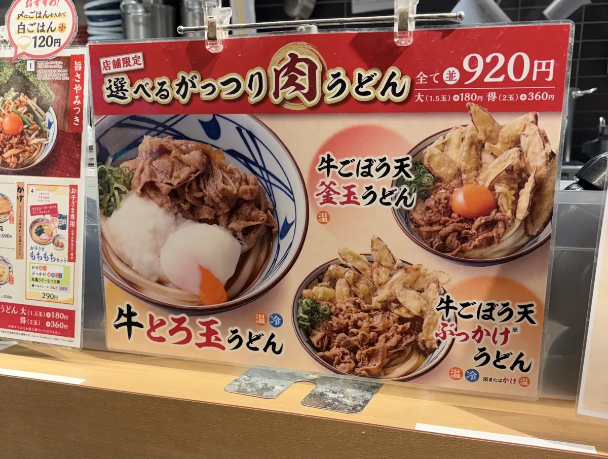投稿を表示牛ごぼ天うどんどれも美味しそうですね🐮お出かけ先でも丸亀製麺に出会えると良いですね🐢