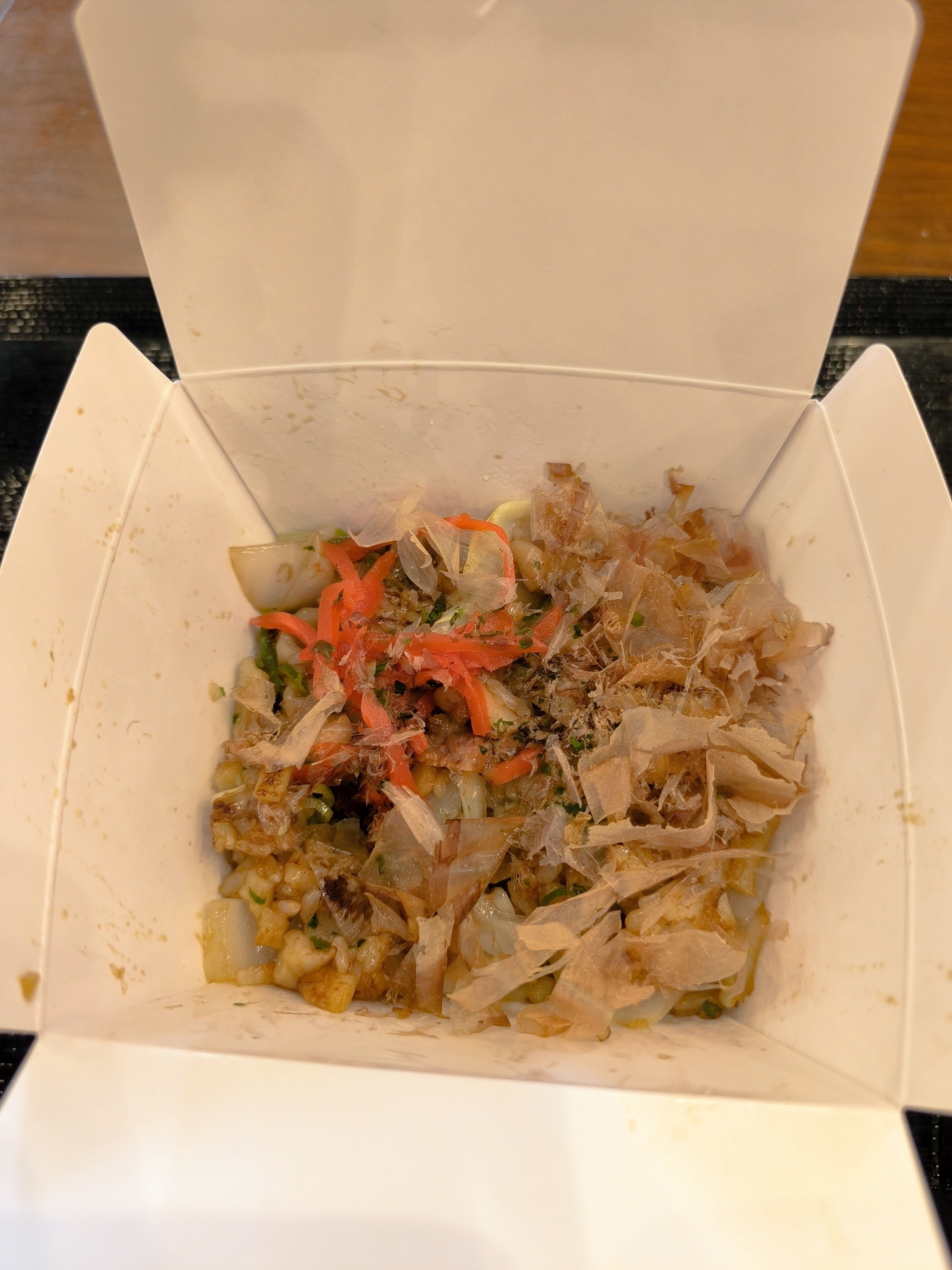 ソース味食べたんですね😀テイクアウトも店内でもこの形態で提供されるのか🤩炭水化物に炭水化物😁