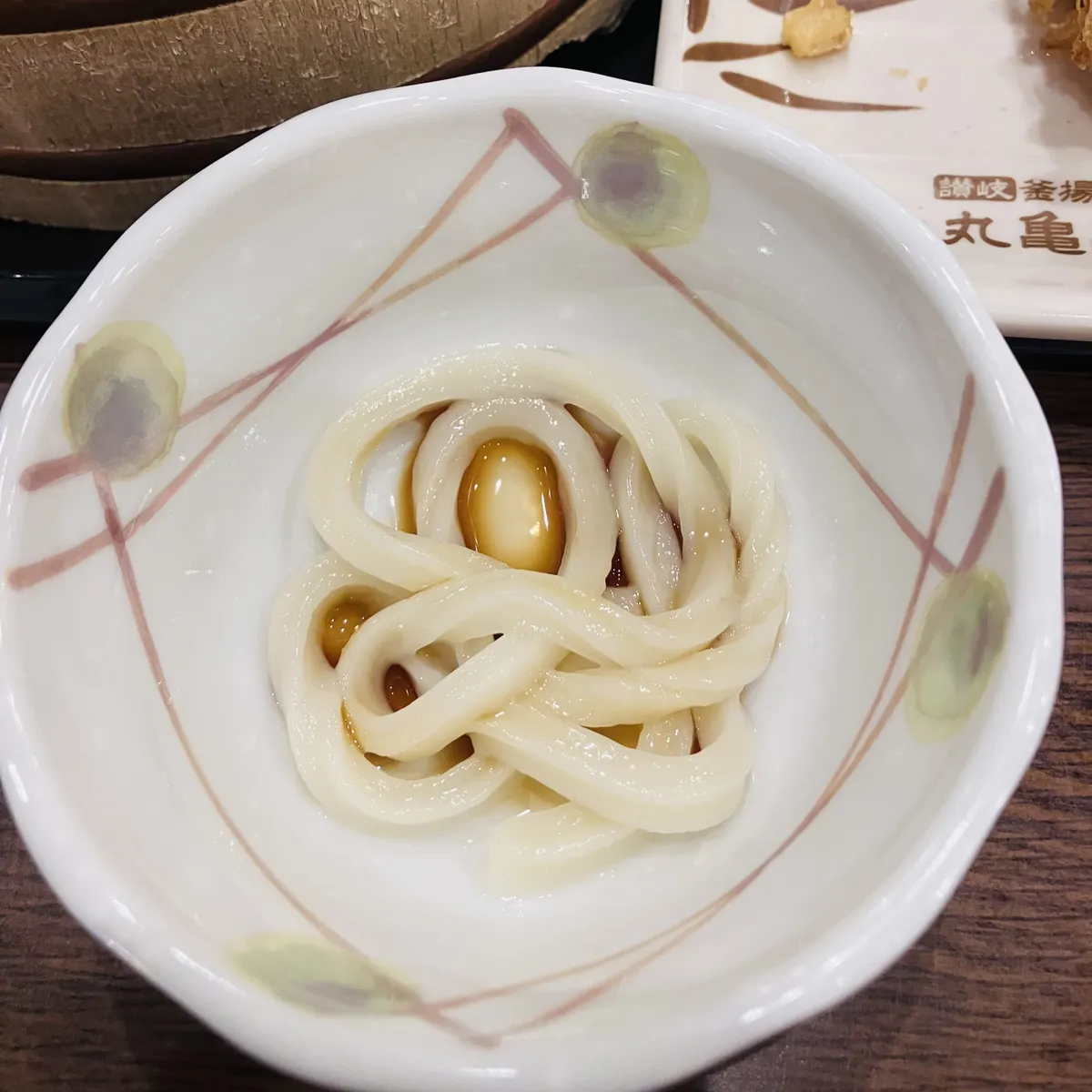 改めて感じた釜揚げうどんとだし醤油のマッチング✨💖それに加わる天麩羅の素材の味の良さ🖐️これこそが丸亀製麺の味だと再認識したのでした🖐️