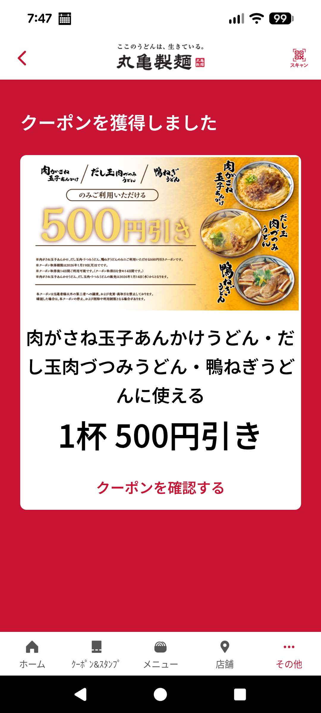 丸亀製麺大好きモチモチクラブ会員の方が当たってクーポンもきっと喜んでると思います😊