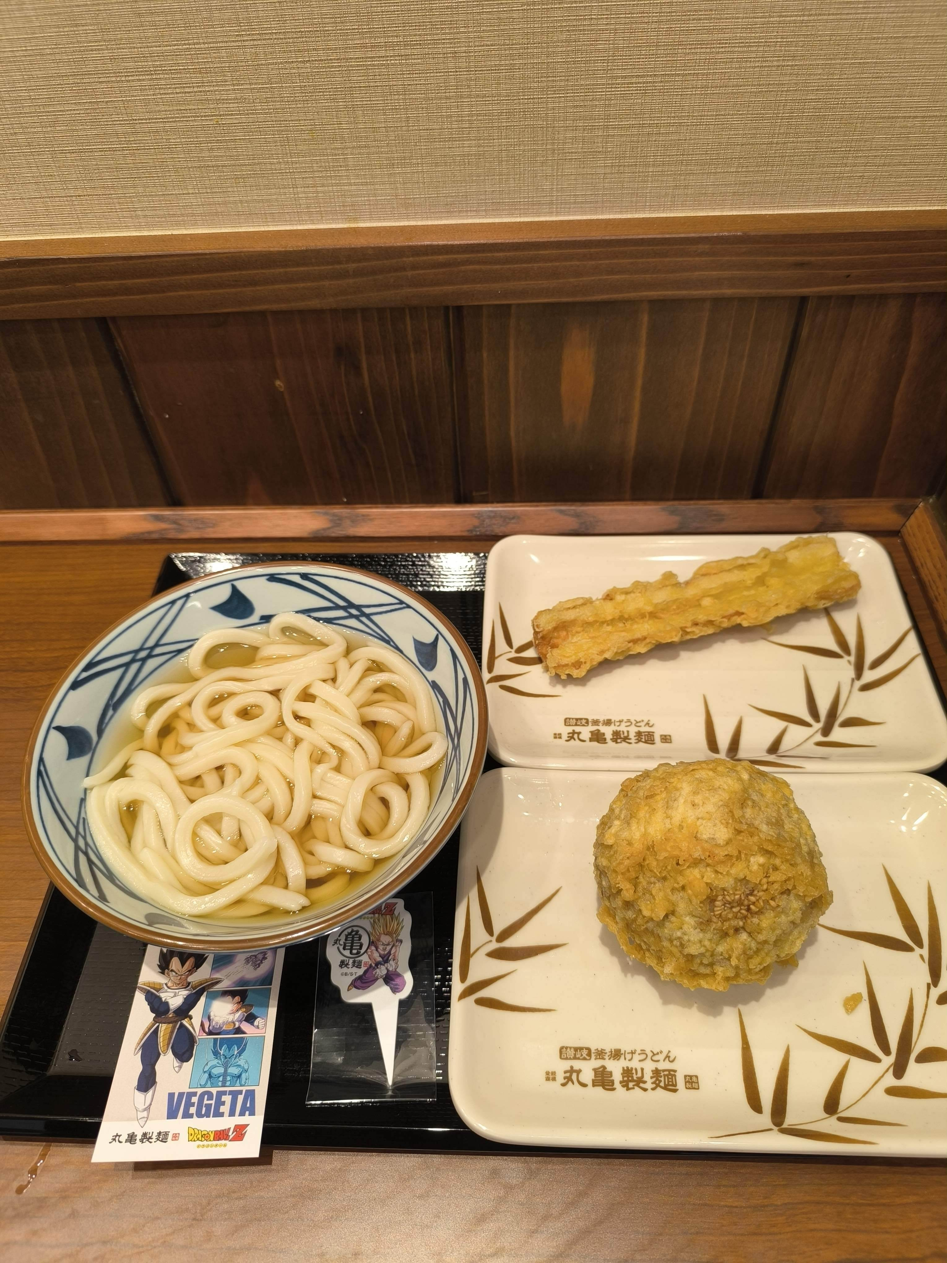 今回はかけうどんにちくわ天ぷらに元気玉おむすびを注文しました🍙