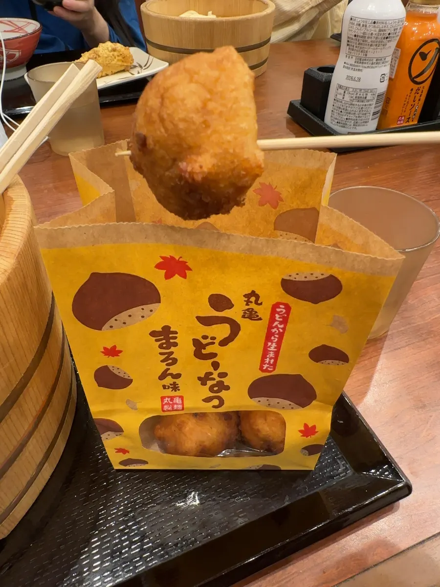 別店舗へ移動し釜揚げうどん2回目、うどーなつマロン味!😁