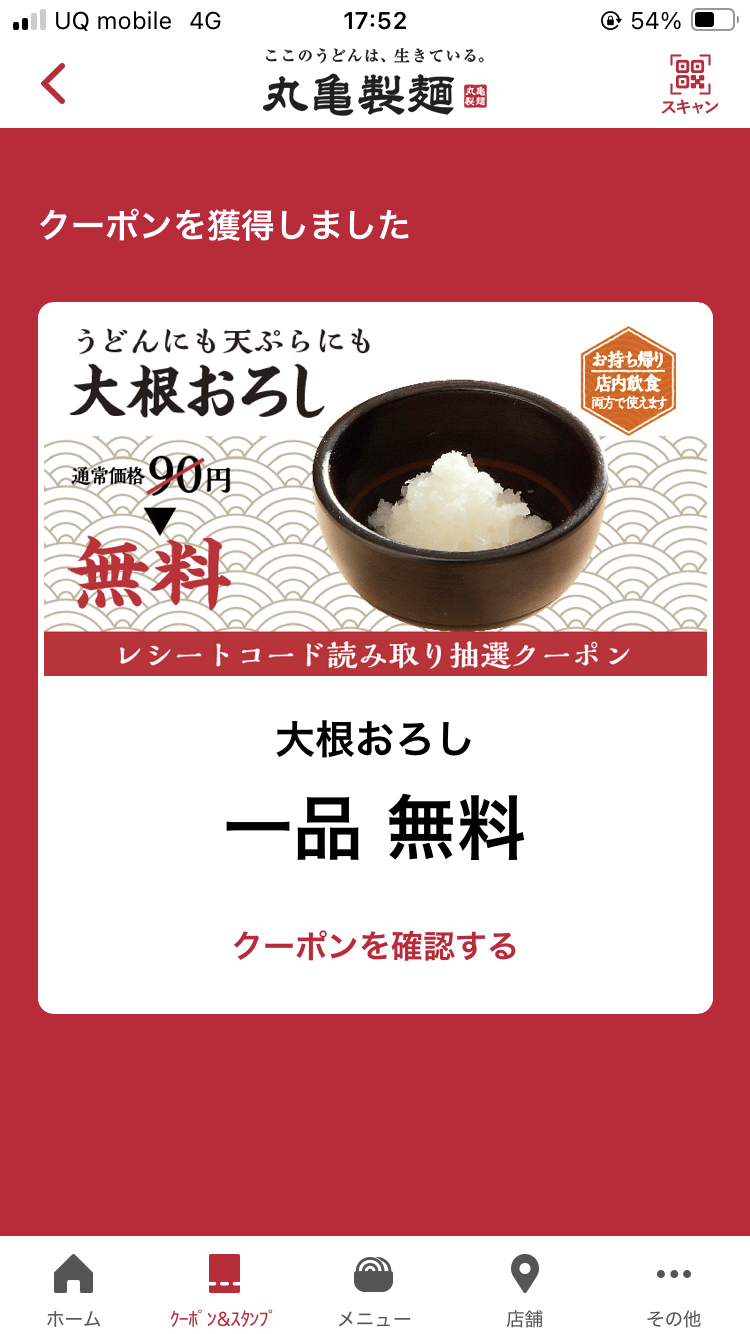 大根おろし無料クーポン当たりおめでとうございます🎉