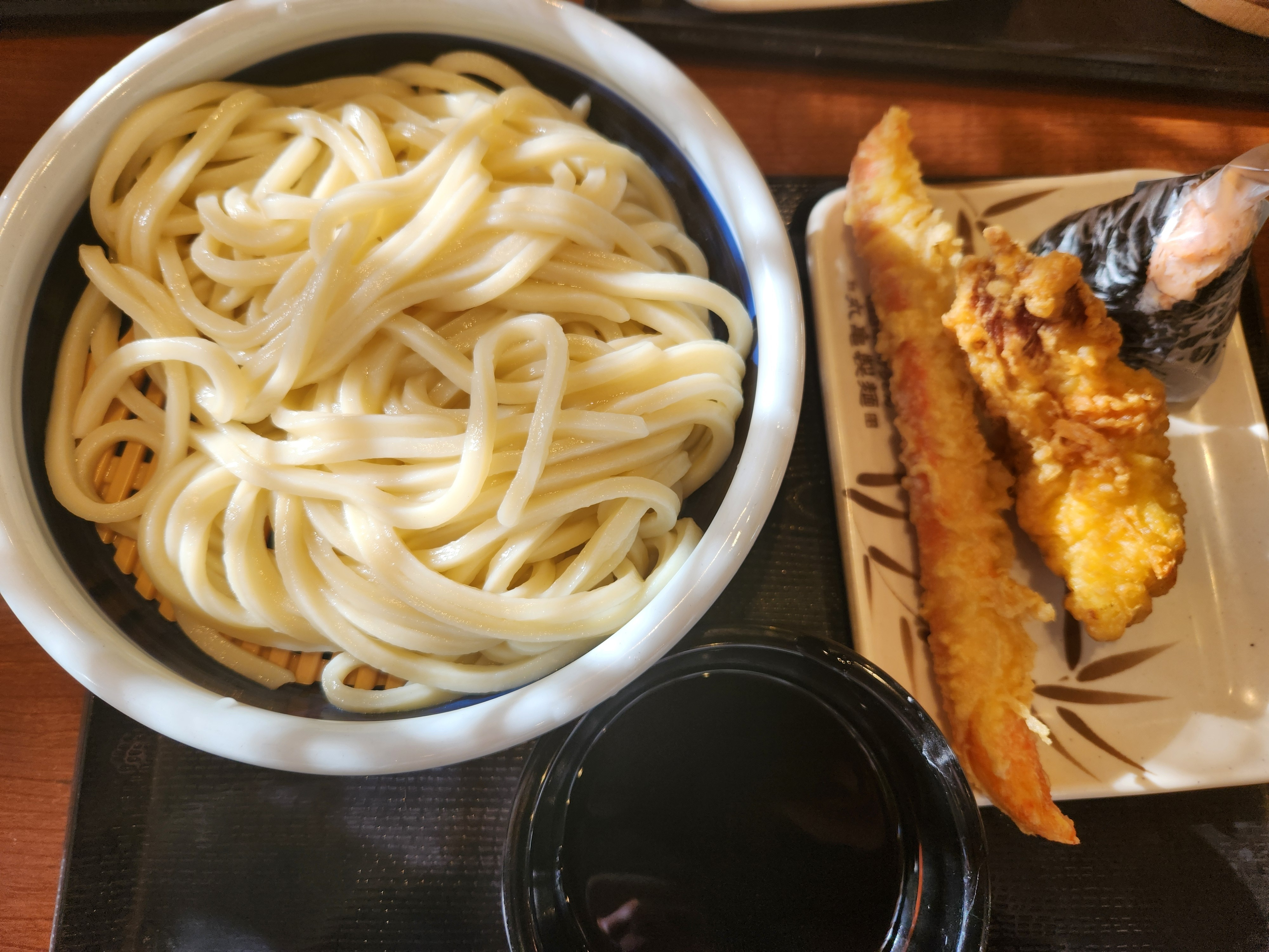 投稿を表示ざるうどん得盛りに天ぷら二品とおにぎり豪華なランチになりました✨