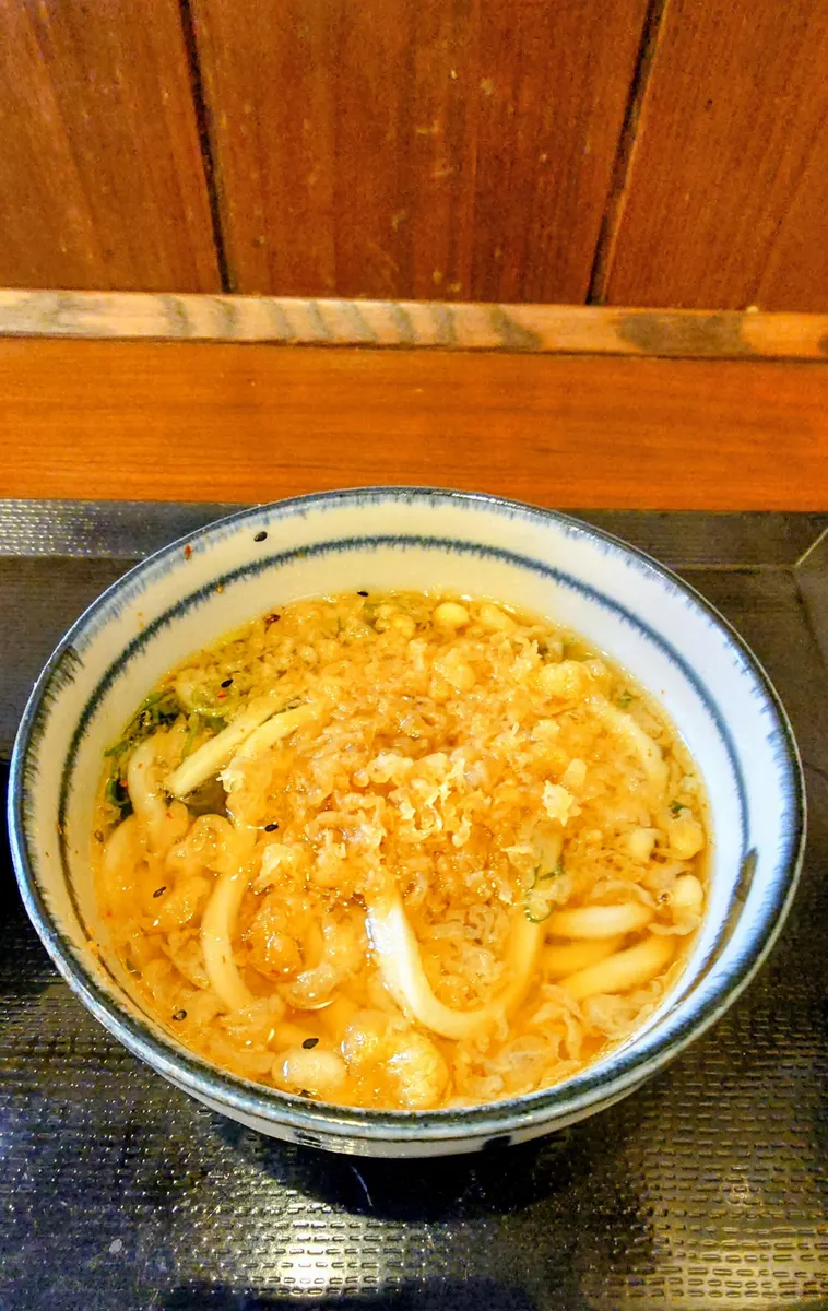 最後はミニかけうどんに天かす投入し、出汁サーバーで出汁つゆを入れ天丼のたれを入れ旨甘ミニかけうどんを作り食べ終わりました🤤