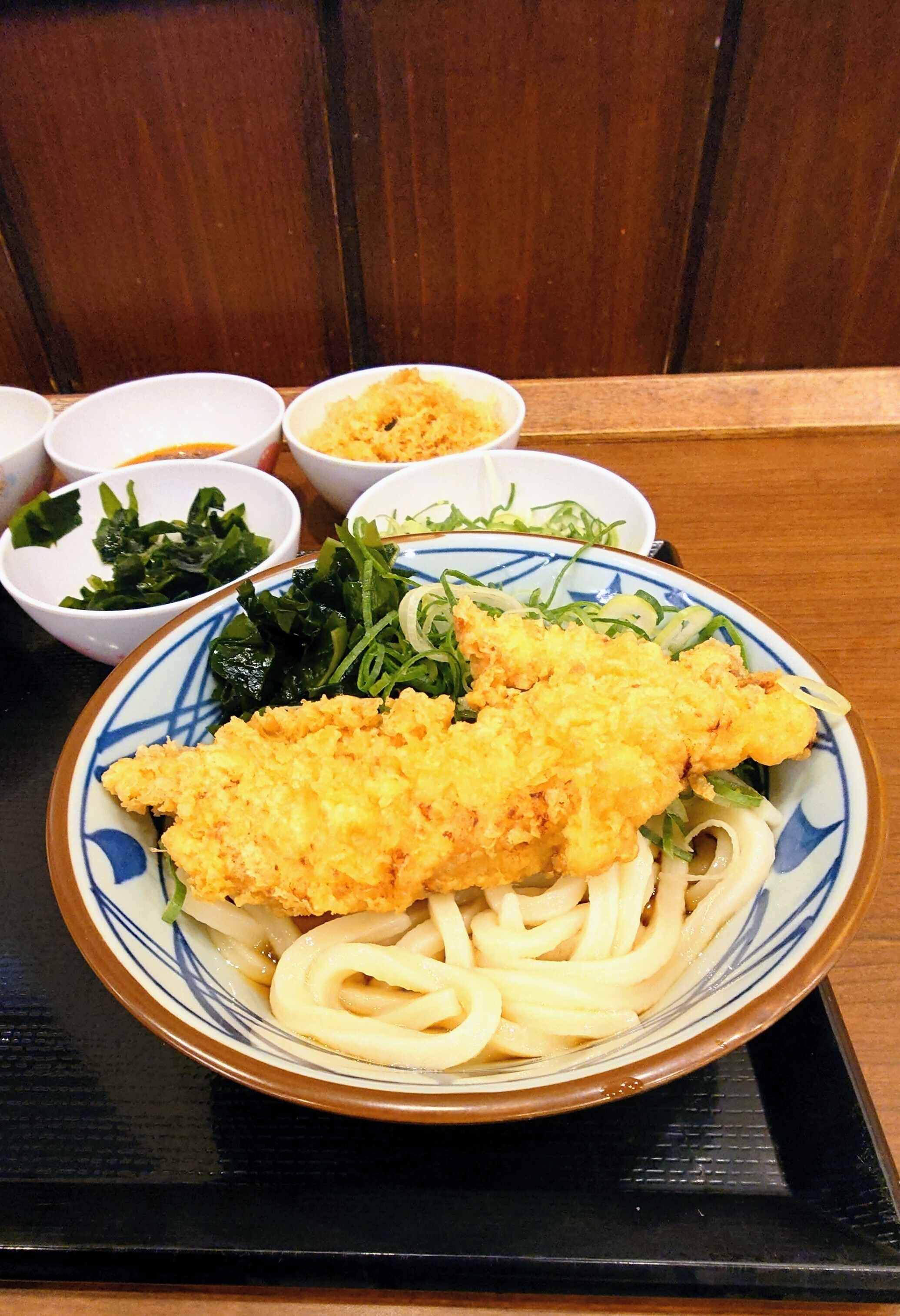 わかめ・🐢ネギにかしわ天を冷ぶっかけにトッピングしました🥢