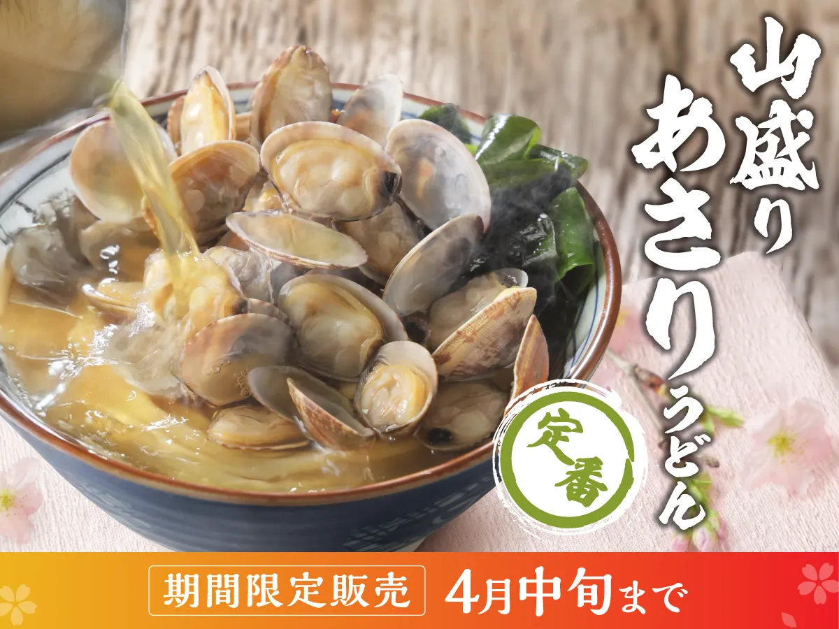 本日より春の丸亀製麺の定番『山盛りあさりうどん』が、いよいよ販売スタート!