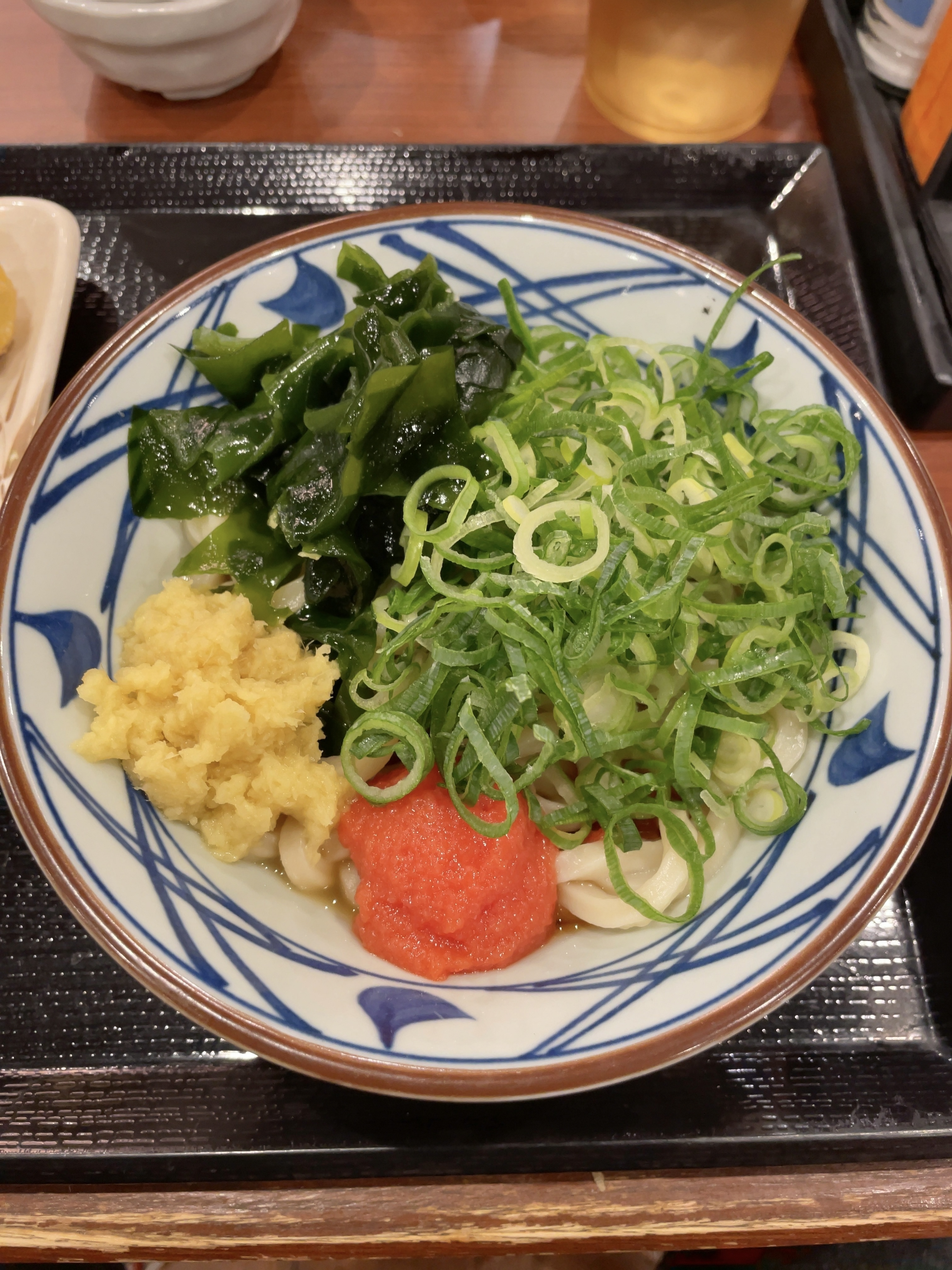 まず、わたしがぶっかけうどん温の並をオーダー、もう一杯が来たところで女性の店員さんに『シェアしてもいいのですか?』とお聞きしたところ、『大丈夫ですよ』と満面の笑顔☺️でお答えいただきましたので、明太子をトッピングしてしまいました。