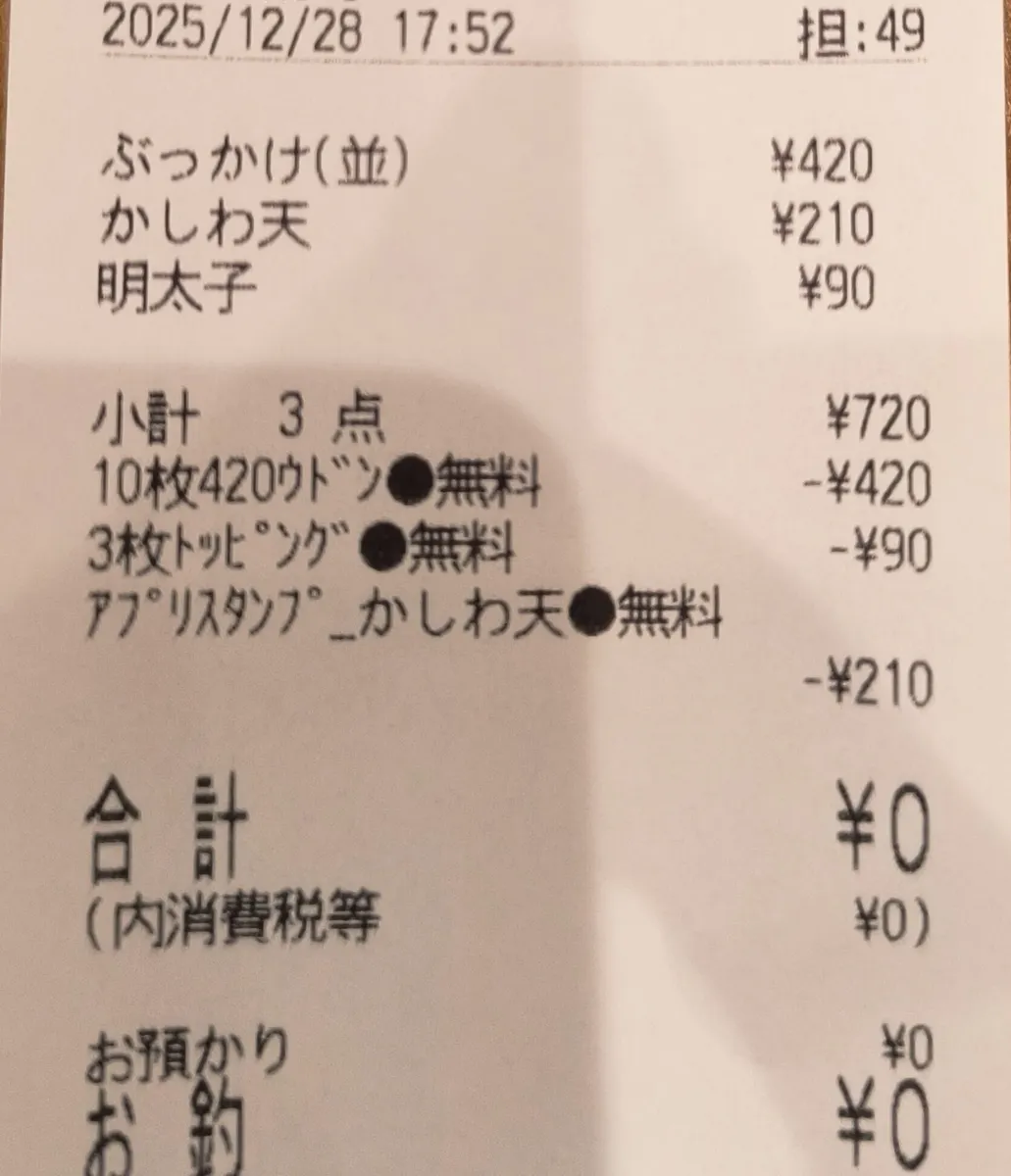 トップ > MARUGAMEgram > 今日の丸亀 > 今年最後の…👛 マッラー🍓 2025/12/28 18:16 今年最後の…👛 うどん札有効期限が今日までだったので合計13枚使用して今年最後の無銭飲食スペシャル食べてきました🐢 ぶっかけ並、明太子、かしわ天ぷらの3店セットです😊 今年も丸亀製麺さんにはいっぱいゴチになりまさしてありがとうございまさした🎁 また来年もよろしくお願いします🎍 いいね 共有する 共有する X LINE リンクをコピー コメントする 3 件の返信 (新着順) ミュートしたユーザーの投稿です。 投稿を表示 年越うどん 2025/12/30 02:06 今年最後にスペシャルセット!! 特別な一年でしたね〜 来年もよろしくお願いします〜 いいね 返信する ミュートしたユーザーの投稿です。 投稿を表示 マッラー🍓 2025/12/30 05:56 年越うどん 今年のスペシャルセットフィナーレを飾る事が出来ました🎉 こちらこそ来年もよろしくお願いします🙇 いいね 返信する ミュートしたユーザーの投稿です。 投稿を表示 武蔵 2025/12/29 07:34 公式公認スペシャル無銭飲食をされるのはマッラーさんだけですね😁 月1外食の私では3枚貯めることもできないです😭 いいね 返信する ミュートしたユーザーの投稿です。 投稿を表示 マッラー🍓 2025/12/29 19:28 武蔵 年末年始の他の外食チェーンの福袋予約済だったり購入済で年明けから数ヶ月は丸亀ちゃんから浮気する予定なので、私もうどん札の使用3枚〜5枚になると思います😊 いいね 返信する ミュートしたユーザーの投稿です。 投稿を表示 きらたろー 2025/12/29 06:44 流石👍無銭飲食締め✨ 来年も投稿お待ちしています🙋♀️ いいね 返信する ミュートしたユーザーの投稿です。 投稿を表示 マッラー🍓 2025/12/29 07:28 きらたろー 期限ギリギリ間に合いました😅 お互い来年も亀活頑張りましょう🐢🎍 いいね 返信する