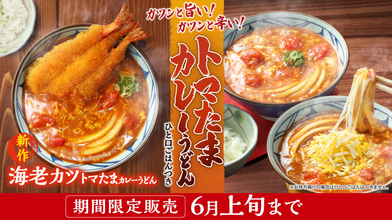 今年はなんと、ぷりっぷりの海老を3尾も重ねて揚げたボリューム満点の新作「海老カツトマたまカレーうどん」も新登場!🦐🍛🍜