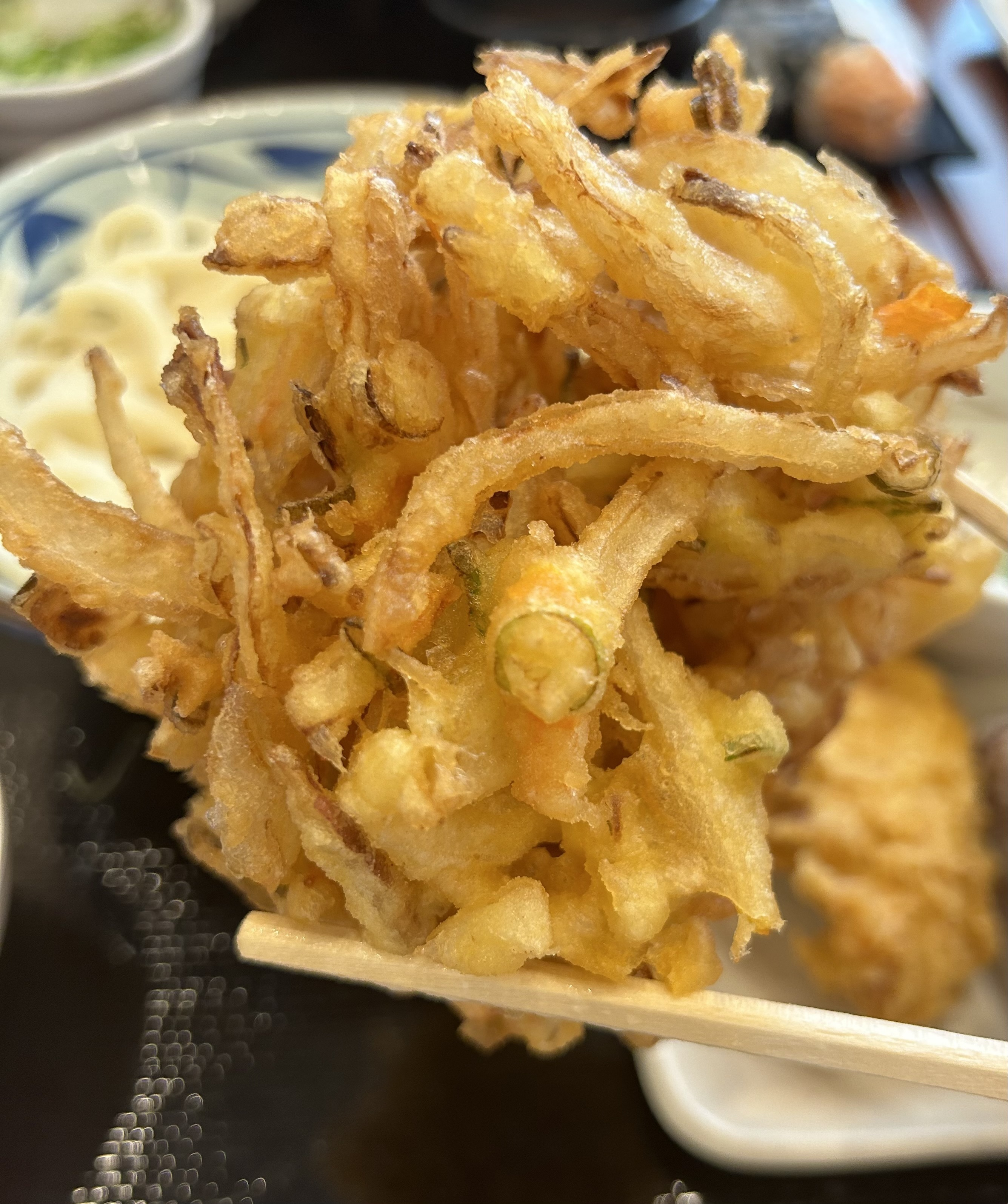 投稿を表示最近はなまるうどんを食べたのですが、かきあげ見た時に、やはり丸亀のデカイな!と感じたので😂✨