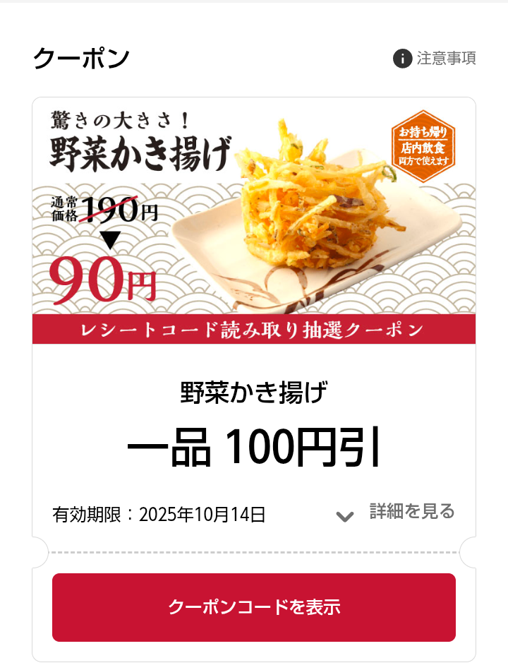 海老天100円引き!そんなクーポン出てるときがあったんですね😳
