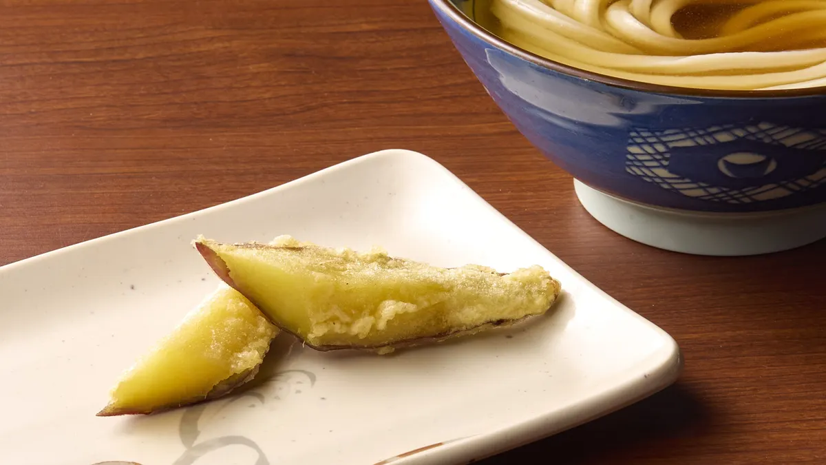 投稿を表示ウチのお店ではイカ🦑下足と豚🐖天とコーンとチーズのかき揚げの3つに絞られた様子です。焼き芋🍠天は無さそうです😟