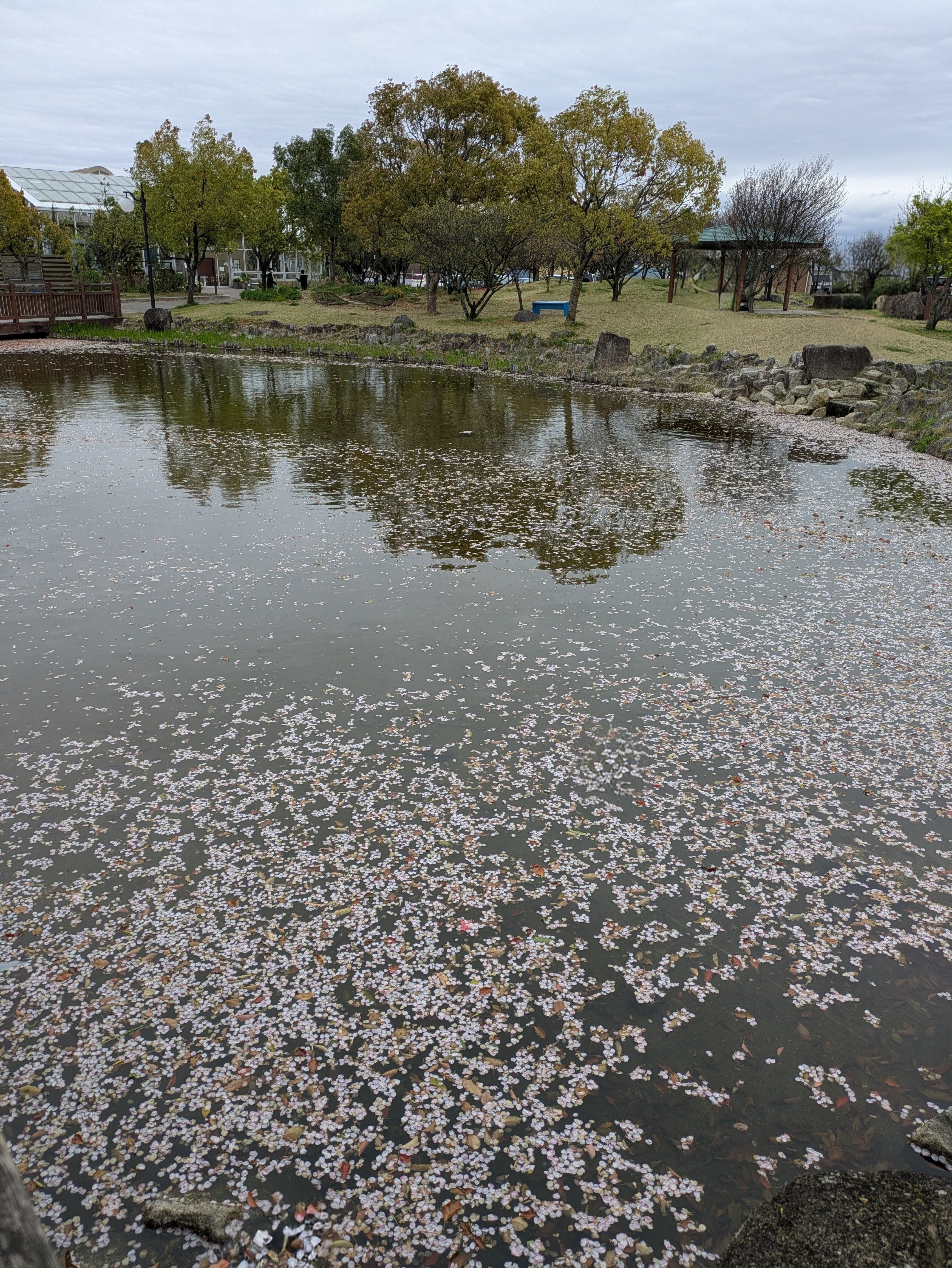 水面に桜の花びらがあり、綺麗ですよ🤗✨🌸桜の絵みたいに🖼️なって良い感じですね👍✨✨✨✨😆