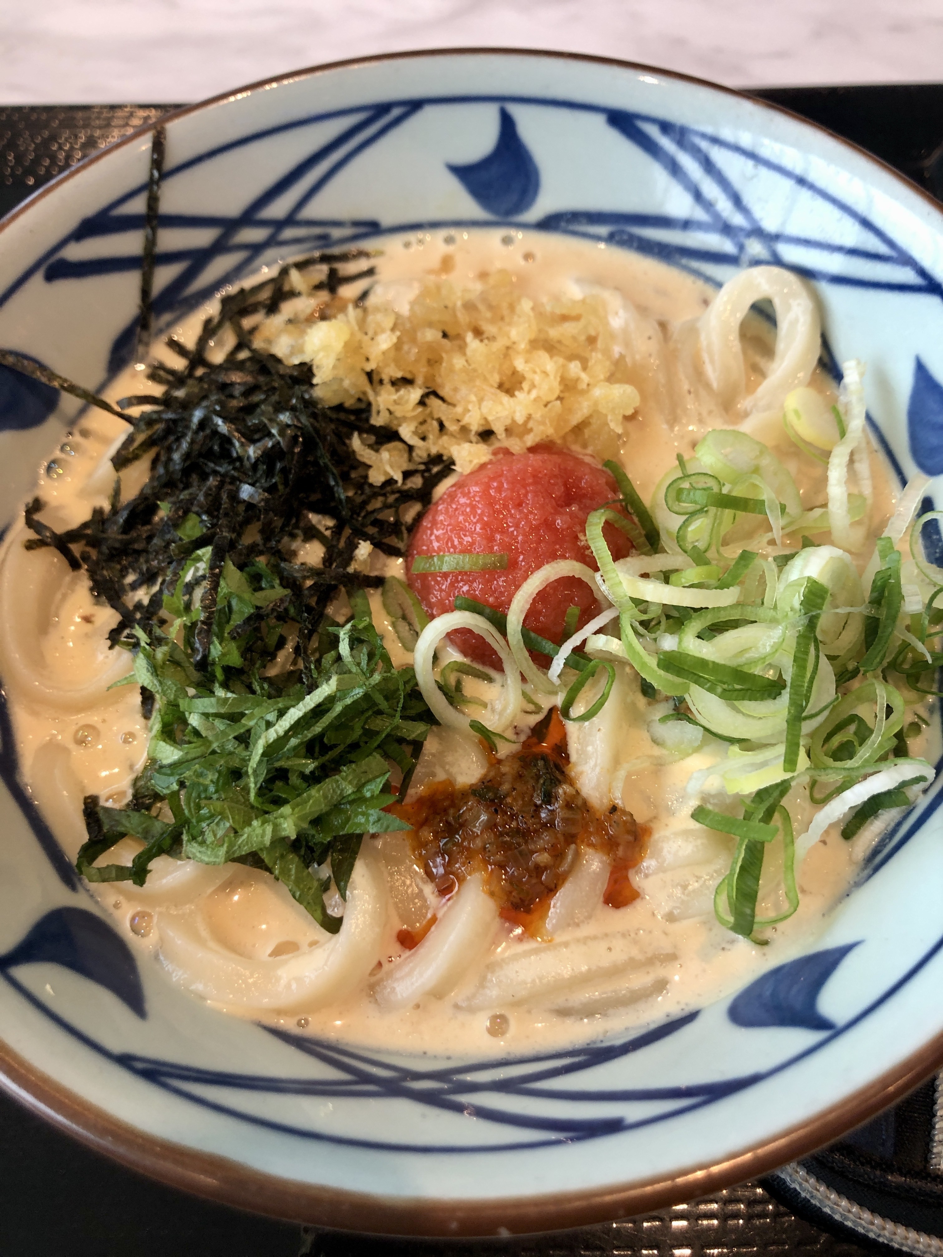 トップ > Mochi-Mochi掲示板 > 丸亀自由帳 > 明太クリームうどん映画を観た帰りに丸亀製麺で... シャクナゲ 2026/04/10 17:51 <div class="se-component se-image-container __se__float-none"><figure><figure><img src="https://community.dl-asobica.com/public/uploads/ckeditor/pictures/1092374/ede00d83-2e98-4018-9b97-45652a0b7a19.jpeg" alt="" data-rotate="" data-proportion="true" data-size="," data-align="none" data-percentage="auto,auto" data-file-name="ede00d83-2e98-4018-9b97-45652a0b7a19.jpeg" data-file-size="undefined" data-origin="," style=""><figcaption>明太クリームうどん</figcaption></figure></figure></div><p>映画を観た帰りに丸亀製麺でお昼。</p><p>気になってた明太クリームうどんを食べました。麺がふわふわもちもちで美味!!</p><p>出汁も濃厚で、明太子もピリ辛つぶつぶで美味い!トッピングの天かす、ネギ、ラー油もいいアクセントに。</p><p>これが丸亀製麺のうどんか、と感動さえ覚えました。次はかけうどんと、うどーなつが食べたい……。</p> 明太クリームうどん 映画を観た帰りに丸亀製麺でお昼。 気になってた明太クリームうどんを食べました。麺がふわふわもちもちで美味!! 出汁も濃厚で、明太子もピリ辛つぶつぶで美味い!トッピングの天かす、ネギ、ラー油もいいアクセントに。 これが丸亀製麺のうどんか、と感動さえ覚えました。次はかけうどんと、うどーなつが食べたい……。 明太クリームうどん お昼ご飯 いいね 共有する 共有する X LINE リンクをコピー トークにコメントする 4件のコメント (新着順) ミュートしたユーザーの投稿です。 投稿を表示 茹でパスタ 2026/04/12 01:26 🤗よろしくおねがいします🤗 いいね 返信する ミュートしたユーザーの投稿です。 投稿を表示 NONTAN 2026/04/11 23:26 明太クリームにラー油の組み合わせ とても美味しそうですね☺️✨ いいね 返信する ミュートしたユーザーの投稿です。 投稿を表示 寅ちゃん 2026/04/10 19:46 冷たい麺が大好きなのですが、最高に感動したメニューです。 いいね 返信する ミュートしたユーザーの投稿です。 投稿を表示 cosmepico 2026/04/10 18:05 初投稿おめでとうございます🎉 これから大いにうどん愛、丸亀愛を語ってくださいね。 うどーなつ、抹茶味が販売されています。食べてみてくださいね。 いいね 返信する