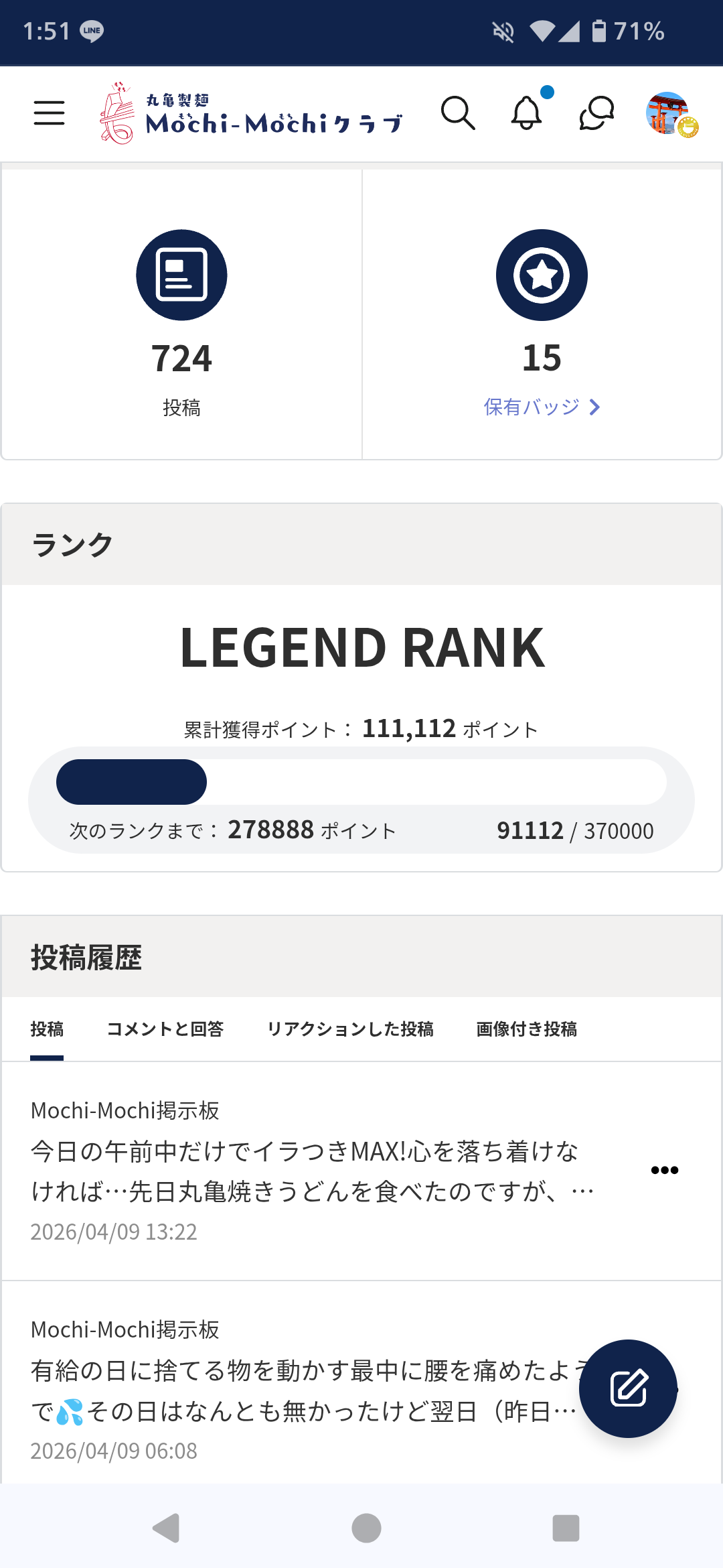 投稿を表示のこり100ptくらいからは、いいね!の3ptを気にしないといけないですね。