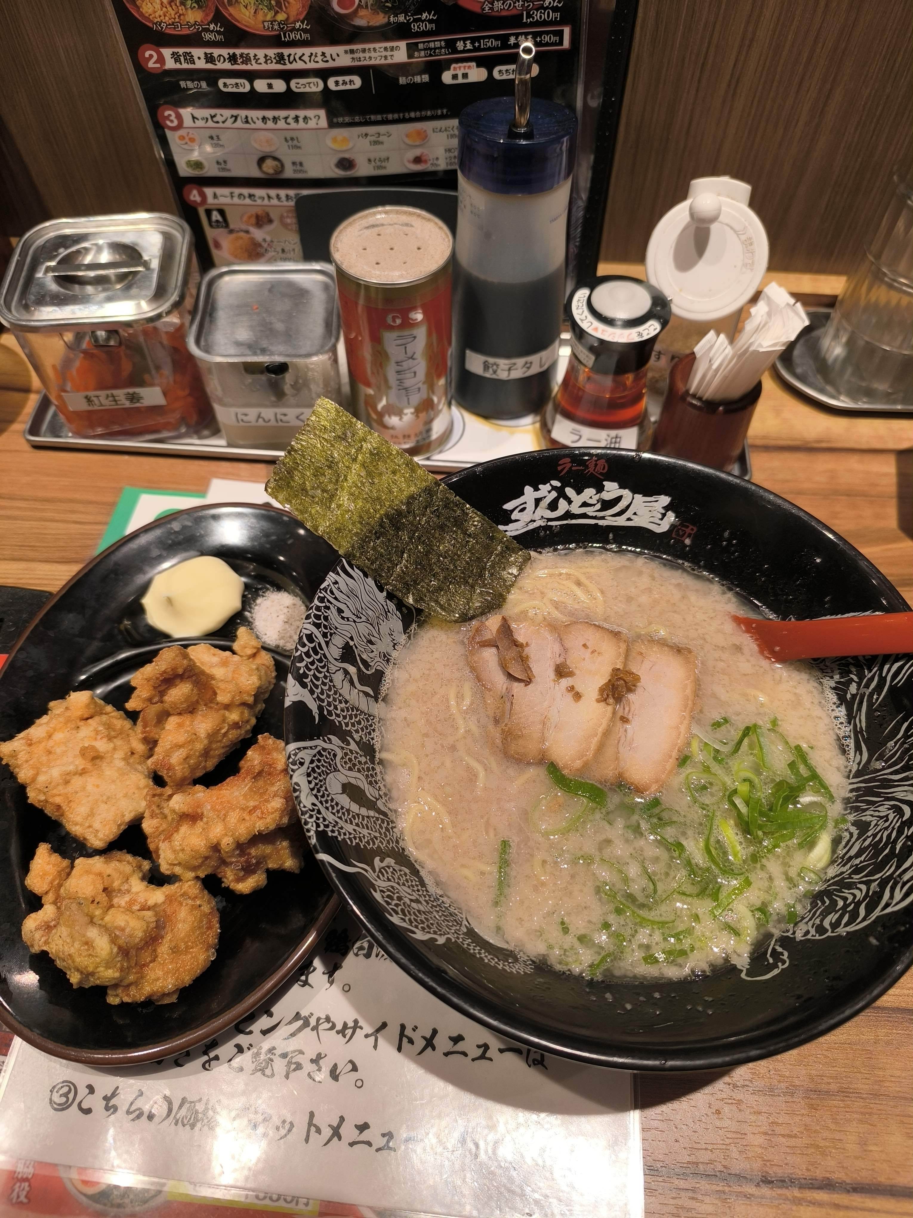ラーメンに唐揚げの図、スゲー😆👍