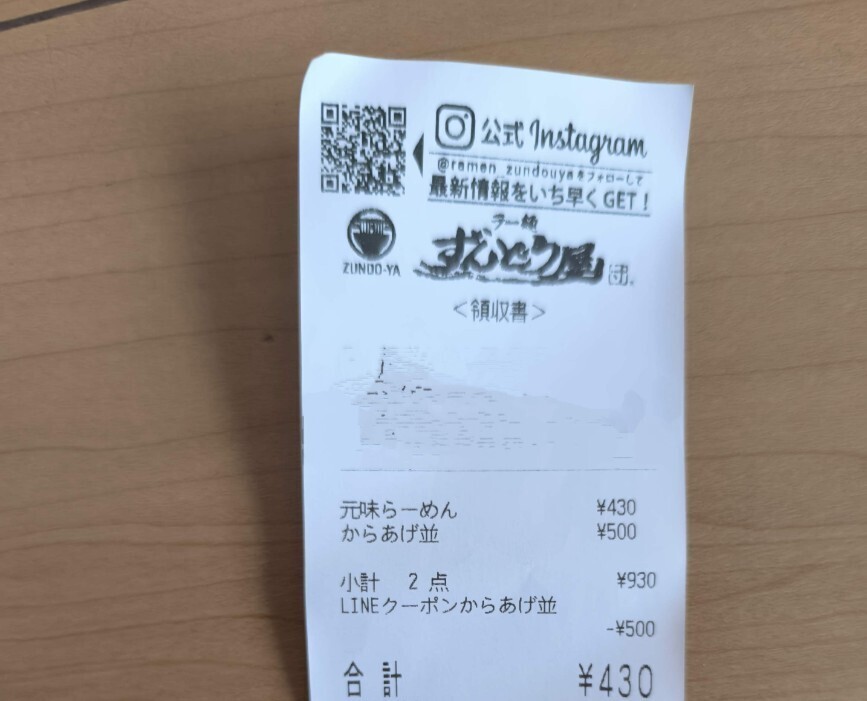 レシート安っ!