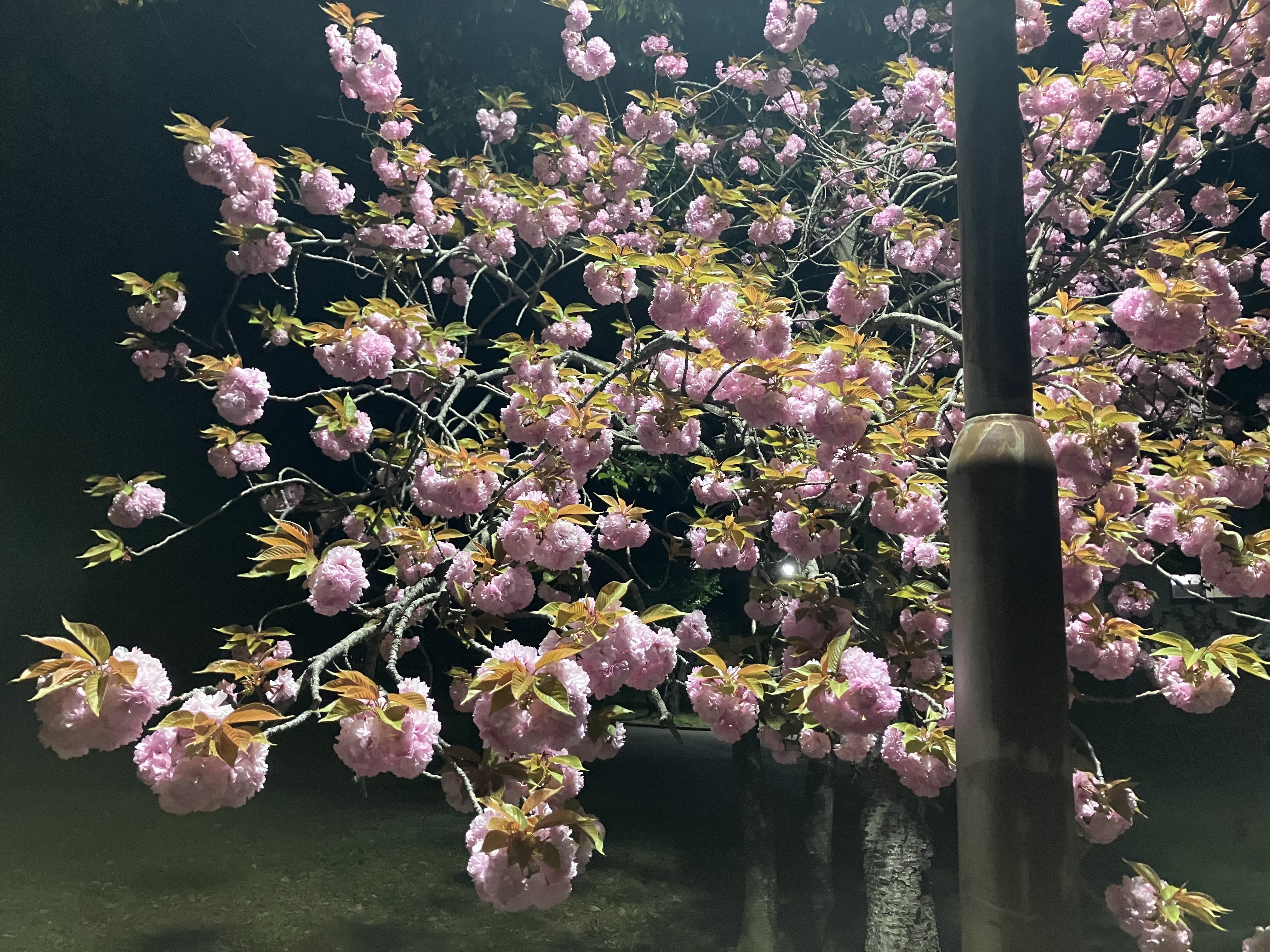 このサクラ、サトザクラかな。