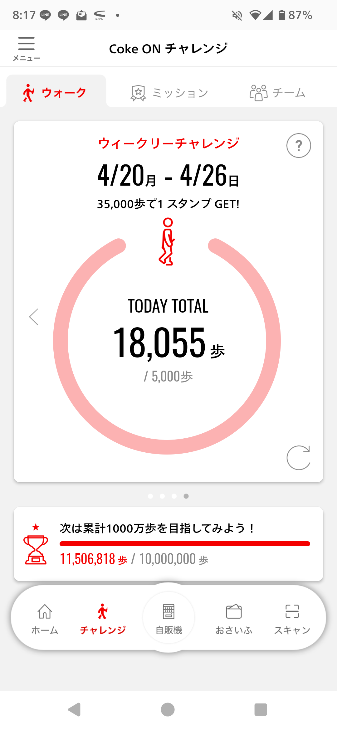 投稿を表示もうすぐで2万歩いっぱい歩きましたね🚶