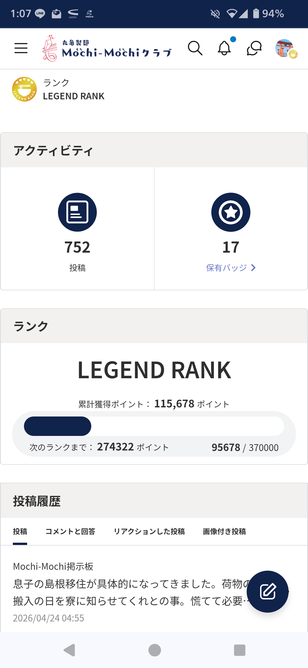 トップ > Mochi-Mochi掲示板 > 丸亀自由帳 > 本日の業務終わりました〜めっちゃ歩いてた!キ... みぽっち 2026/04/24 20:28 <p>本日の業務終わりました〜</p><p>めっちゃ歩いてた!</p><div class="se-component se-image-container __se__float-none"><figure><img src="https://community.dl-asobica.com/public/uploads/ckeditor/pictures/1112469/5ff8e379-737e-4a45-9165-ba91c3d2f00d.png" alt="" data-rotate="" data-proportion="true" data-size="," data-align="none" data-percentage="auto,auto" data-file-name="5ff8e379-737e-4a45-9165-ba91c3d2f00d.png" data-file-size="undefined" data-origin="," style=""></figure></div><p>キリ番ではないけど</p><div class="se-component se-image-container __se__float-none"><figure><img src="https://community.dl-asobica.com/public/uploads/ckeditor/pictures/1112472/9a26a11f-0b91-4953-8906-97a4d6d68ce3.png" alt="" data-rotate="" data-proportion="true" data-size="," data-align="none" data-percentage="auto,auto" data-file-name="9a26a11f-0b91-4953-8906-97a4d6d68ce3.png" data-file-size="undefined" data-origin="," style=""></figure></div><p>5678って事で💦</p> 本日の業務終わりました〜 めっちゃ歩いてた! キリ番ではないけど 5678って事で💦 いいね 共有する 共有する X LINE リンクをコピー トークにコメントする 8件のコメント (新着順) ミュートしたユーザーの投稿です。 投稿を表示 讃岐うどん 2026/04/25 16:10 元気によく歩きました。えらいえらい。パチパチ👏👏 利用しているアプリ、本日サービスデーとかで、1歩で3歩に換算しているとかではないでしょうね。 また、みぽっちさんにバカにするな!と怒られそうですね。 いいね 返信する ミュートしたユーザーの投稿です。 投稿を表示 輝るうどん 2026/04/25 08:36 健康的ですね! いいね 返信する ミュートしたユーザーの投稿です。 投稿を表示 茹でパスタ 2026/04/25 04:17 お疲れ様です🤗 沢山歩かれていて、それだけお仕事が忙しかったのがわかりますね〜🤗✨ いいね 返信する ミュートしたユーザーの投稿です。 投稿を表示 みぽっち 2026/04/25 05:29 茹でパスタ 今日は歩いたな〜と自分でも思いました〜✨ いいね 返信する ミュートしたユーザーの投稿です。 投稿を表示 きらたろー 2026/04/24 23:41 お疲れさまでした🙋♀️ 私も庭関係(セルフ剪定)で歩いたので5桁行きました✨ いいね 返信する ミュートしたユーザーの投稿です。 投稿を表示 みぽっち 2026/04/25 05:28 きらたろー 1万歩歩くと達成感がありますよね✨ いいね 返信する ミュートしたユーザーの投稿です。 投稿を表示 cosmepico 2026/04/24 22:33 おつかれさまでした。 ふくらはぎのストレッチをしてあげてくださいね😊 いいね 返信する ミュートしたユーザーの投稿です。 投稿を表示 みぽっち 2026/04/25 05:27 cosmepico ありがとうございます✨ 浮腫んでる〜💦 いいね 返信する ミュートしたユーザーの投稿です。 投稿を表示 ハセヤン 2026/04/24 22:20 境内を歩いていると かなりの歩数になります いいね 返信する ミュートしたユーザーの投稿です。 投稿を表示 みぽっち 2026/04/25 05:27 ハセヤン 広い境内なのかな〜 お散歩コースでしょうか、随分行ってないな〜💦 いいね 返信する ミュートしたユーザーの投稿です。 投稿を表示 マッラー🍓 2026/04/24 20:52 もうすぐで2万歩いっぱい歩きましたね🚶 お仕事お疲れ様でした😊 いいね 返信する ミュートしたユーザーの投稿です。 投稿を表示 みぽっち 2026/04/25 05:26 マッラー🍓 自分でもびっくり! いいね 返信する ミュートしたユーザーの投稿です。 投稿を表示 寅ちゃん 2026/04/24 20:35 凄すぎ!この辺で「いいころなはっ」😅 いいね 返信する ミュートしたユーザーの投稿です。 投稿を表示 みぽっち 2026/04/24 20:39 寅ちゃん 恐縮です☺️ いいね 返信する