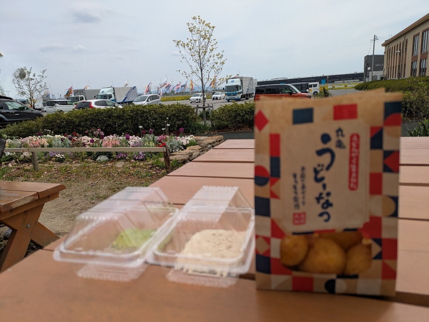 お昼過ぎには雨が振り出す予報だったので早めに丸亀製麺さんに行って何時ものセットをいただきテイクアウトでうどーなつを