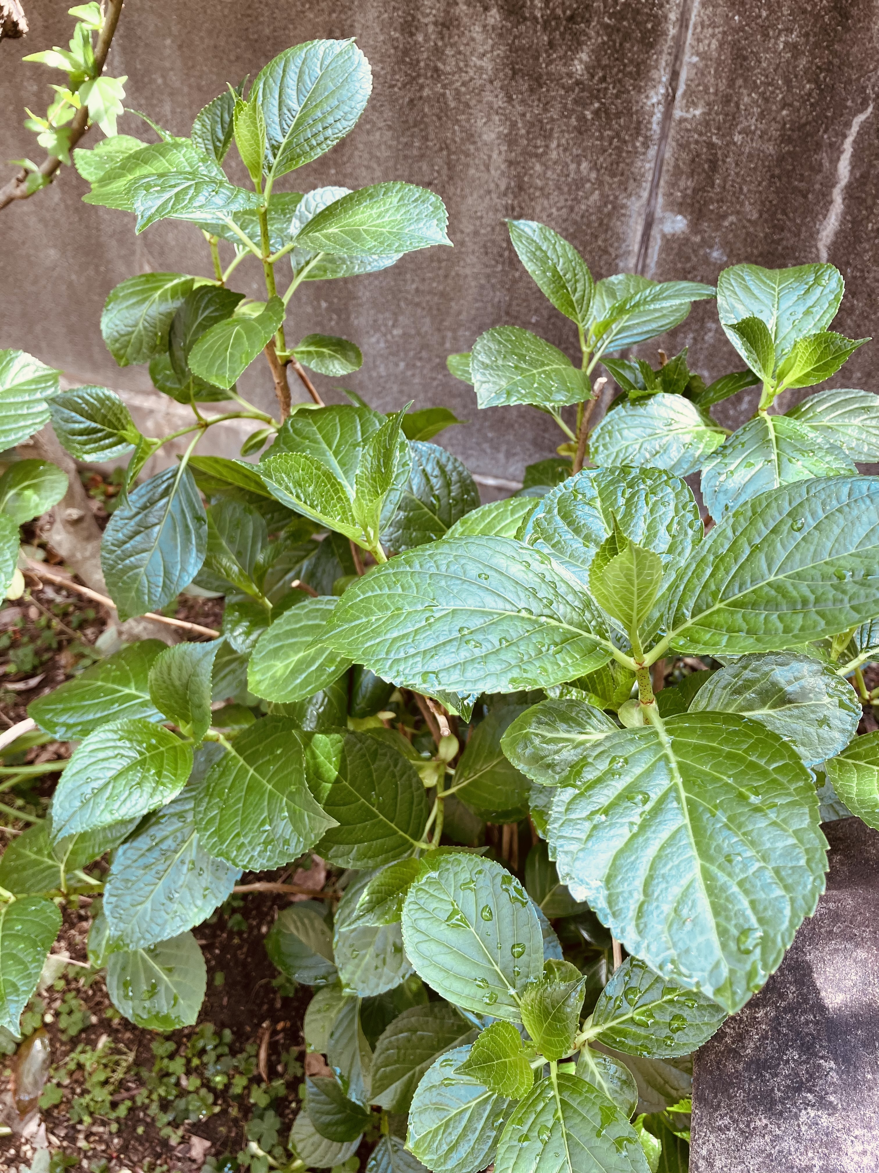 ダンスパーティ(洋ガクアジサイ)は蕾が見られない😢葉ばかり育っている😅