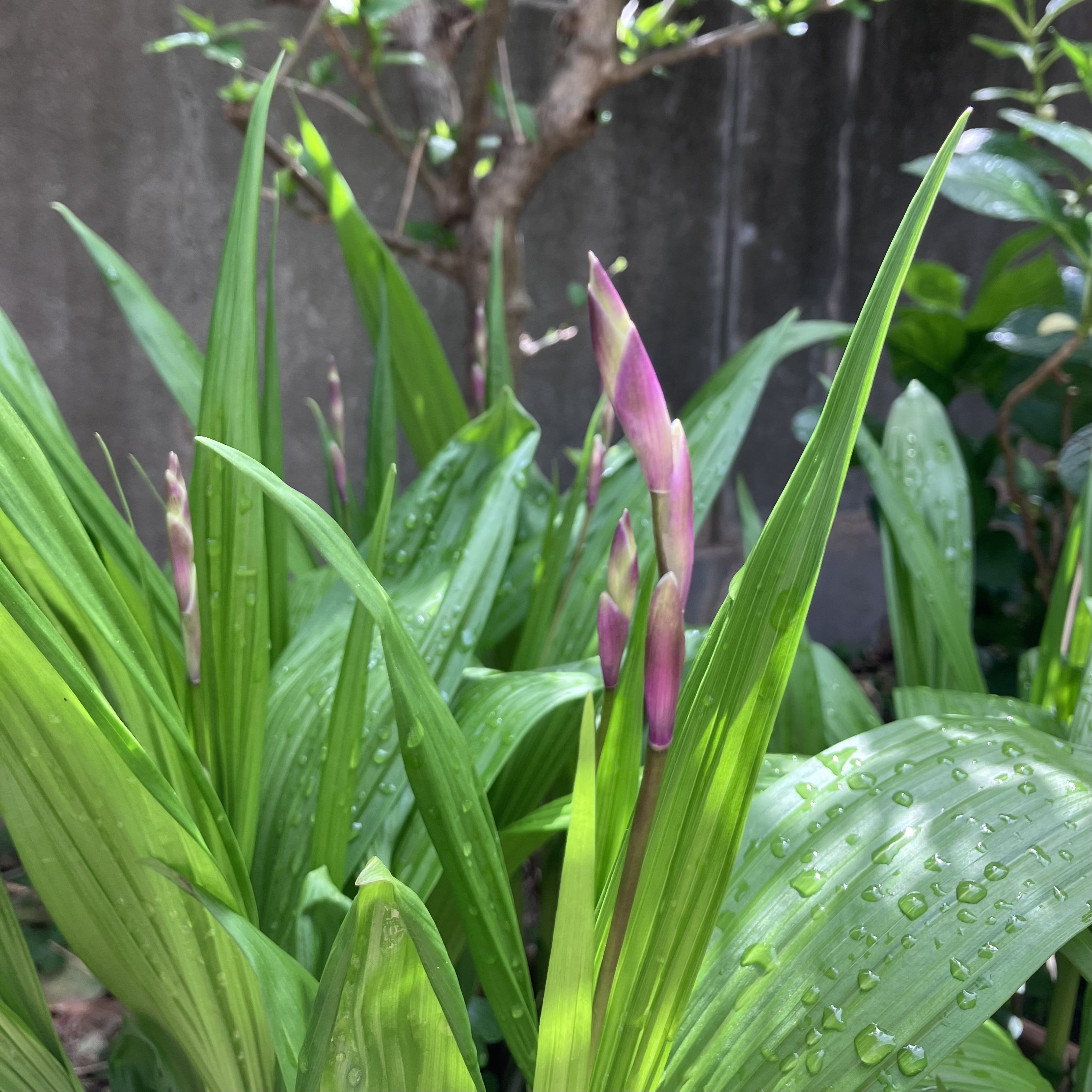 散水後の「紫蘭」の蕾です